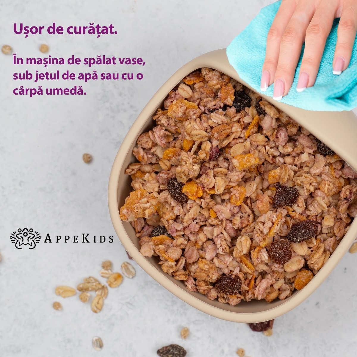 Bolul din silicon este un accesoriu indispensabil la inceputul diversificarii copilului. Este foarte important ca micutul sa experimenteze gusturi si texturi noi pentru ca, mai tarziu, sa fie integrat in minunata experienta de a lua masa in familie.