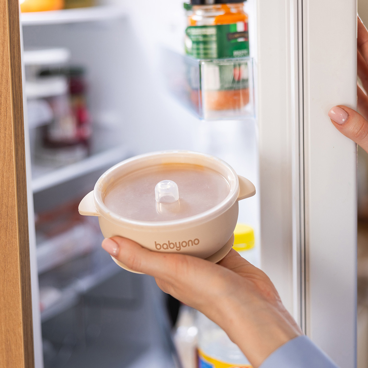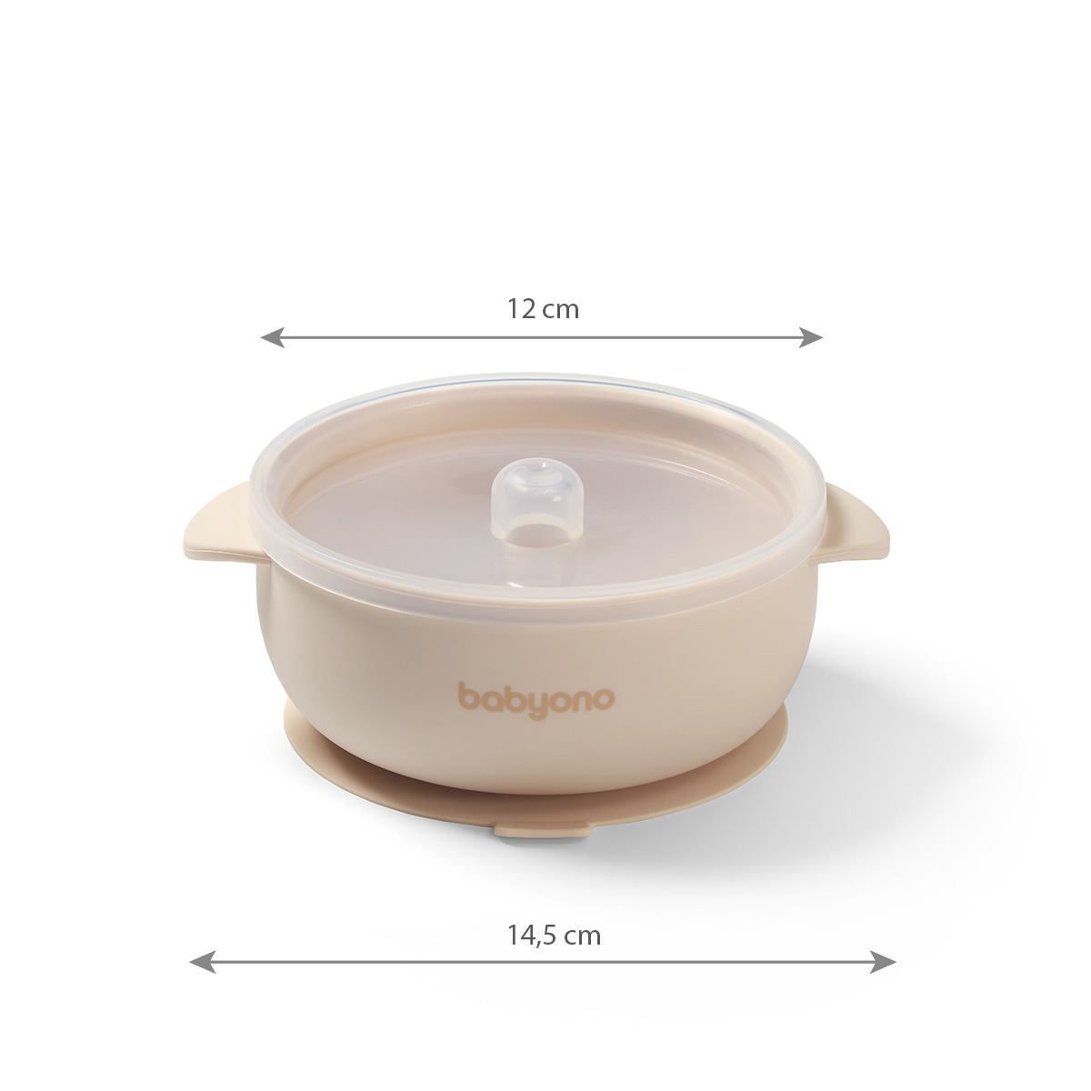 bol din silicon cu ventuza si capac pentru bebelusi 6+ luni, bej, Babyono 1662/03
