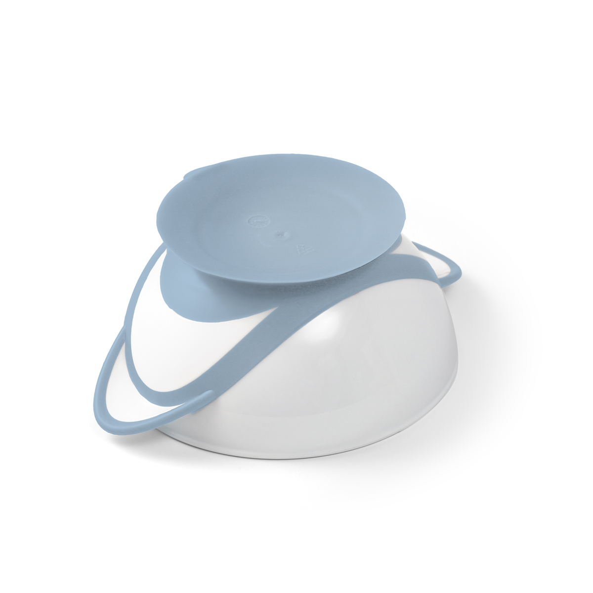 Baza antiderapantă cu ventuză împiedică alunecarea bolului pe suprafeÈ›e, oferind stabilitate în timpul utilizării, iar compartimentul special pentru linguriță previne murdărirea sau pierderea acesteia.