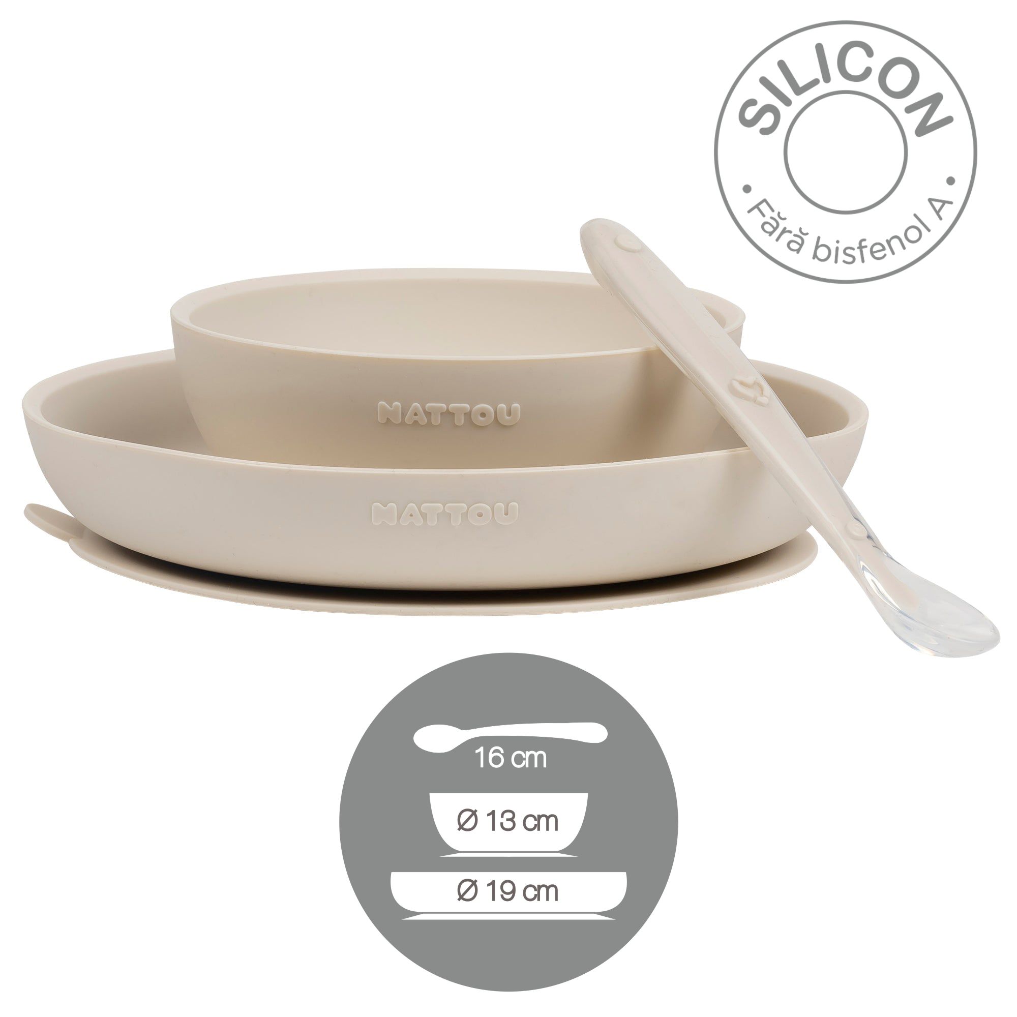 Ultima actualizare a informatiilor de prezentare pentru Farfurie, Castronel cu ventuza si lingurita din silicon, Crem, Nattou a fost efectuata la data de 15-04-2026.