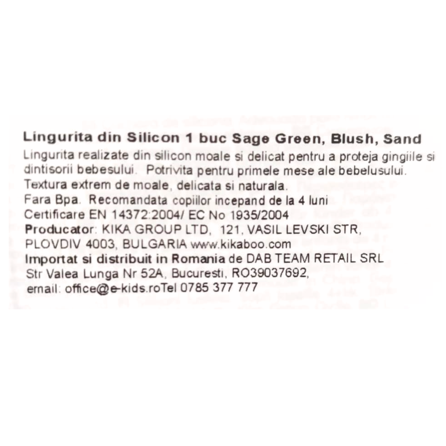 Ultima actualizare a informatiilor de prezentare pentru Lingurita din silicon, Sage Green, 4 luni+, 1 bucata, Kikka Boo a fost efectuata la data de 22-04-2026.