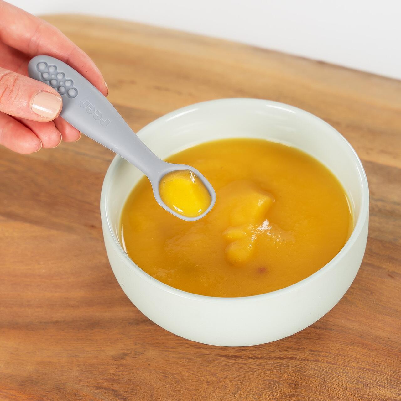 Curăță lingurițele înainte de prima utilizare și după fiecare masă, folosind apă fierbinte și detergent blând, sau în mașina de spălat vase (raftul superior). Pot fi utilizate și în cuptorul cu microunde pentru încălzirea alimentelor.