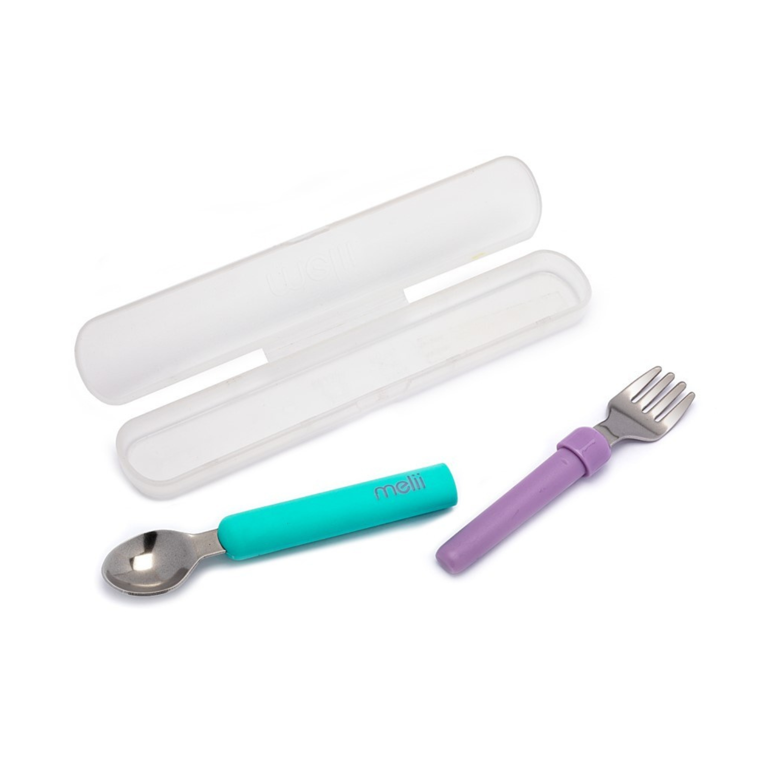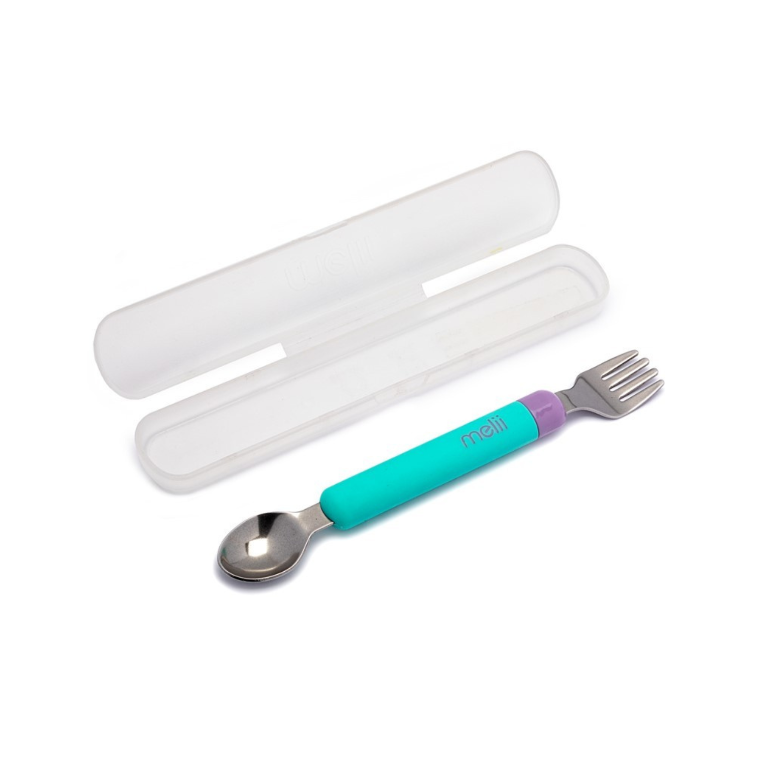 Setul Melii – linguriță și furculiță detașabile include o linguriță albastra și o furculiță mov, concepute special pentru micuți. Ustensilele sunt sigure, durabile și perfecte pentru utilizarea zilnică, acasă sau în călătorii. Designul detașabil permite separarea linguriței și furculiței pentru curățare și depozitare facilă. Husa de transport inclusă menține ustensilele curate și igienice, oferind confort și practică maximă. Culorile vibrante fac masa mai atractivă și distractivă pentru copii.