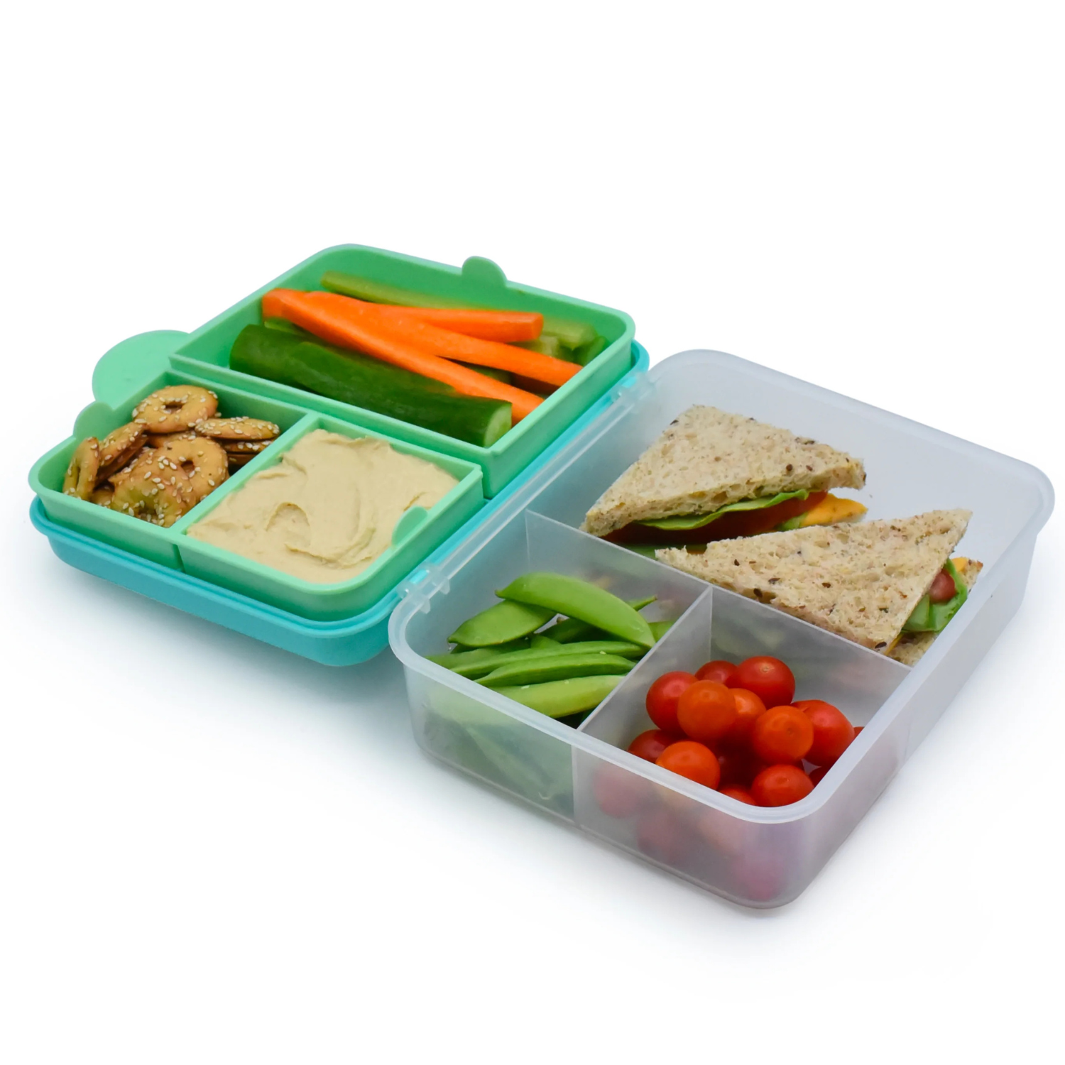 Recipientele pentru depozitarea alimentelor sunt potrivite atat pentru copii, cat si pentru adulti, fiind concepute pentru utilizare zilnica. Capacul este prevazut cu o clapeta mare, usor de deschis, ceea ce le permite copiilor de varsta scolara sa isi acceseze pranzul cu incredere si independenta. Designul inteligent, cu doua niveluri si compartimente multiple, ajuta la organizarea eficienta a alimentelor, fara amestecare.