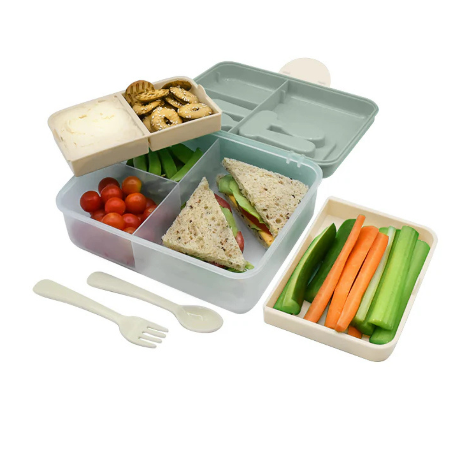 Recipientele pentru depozitarea alimentelor sunt potrivite atat pentru copii, cat si pentru adulti, fiind concepute pentru utilizare zilnica. Capacul este prevazut cu o clapeta mare, usor de deschis, ceea ce le permite copiilor de varsta scolara sa isi acceseze pranzul cu incredere si independenta. Designul inteligent, cu doua niveluri si compartimente multiple, ajuta la organizarea eficienta a alimentelor, fara amestecare.