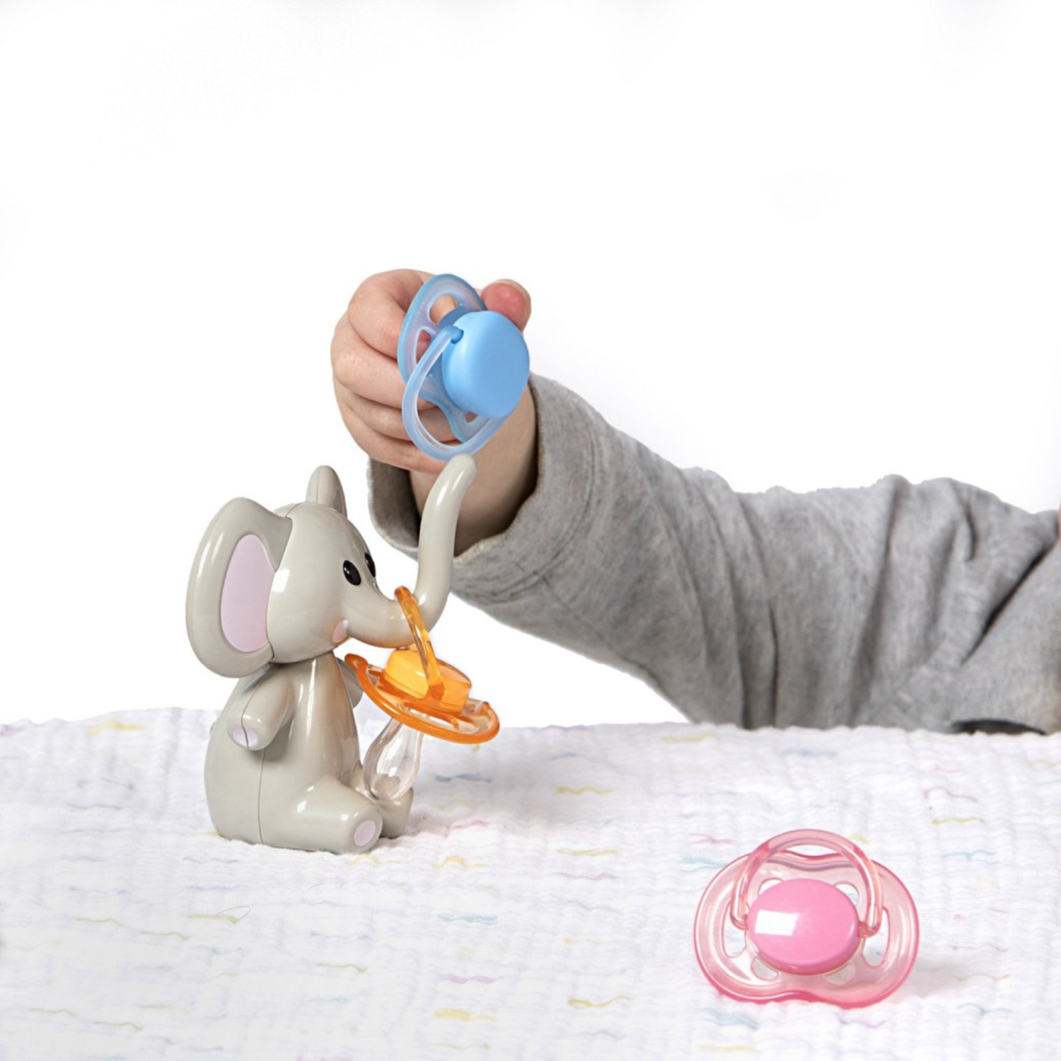 Suportul pentru depozitare suzetă Melii – Elefant Blue este soluția practică și drăgălașă pentru păstrarea suzetelor curate și organizate. Cu un design simpatic în formă de elefant, acest suport poate depozita până la 4 suzete, menținând tetinele suspendate pentru a evita contactul cu germenii și murdăria de pe suprafețe. Ideal atât pentru acasă, cât și pentru camera copilului, combină utilitatea cu un aspect decorativ plăcut.