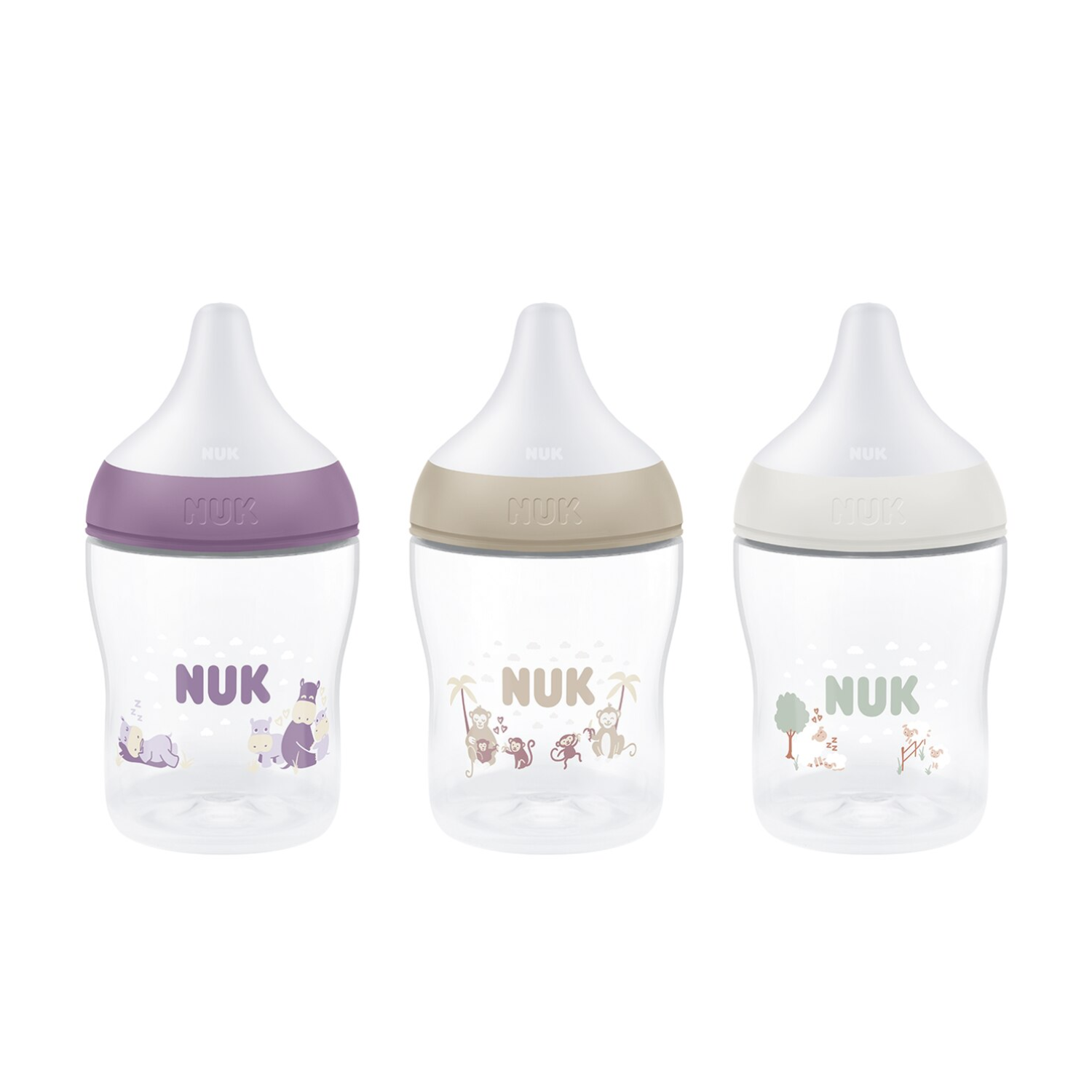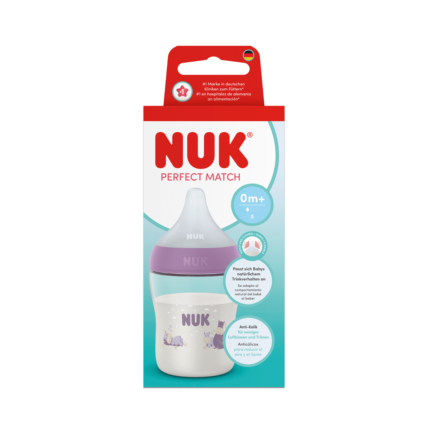 Biberonul NUK Perfect Match de 150 ml, fabricat din polipropilenă (PP) de calitate superioară, este ușor și rezistent. Tetina moale, flexibilă și cu suprafață asemănătoare pielii imită cât mai fidel alăptarea naturală, permițând bebelușului să se atașeze intuitiv. Sistemul anti-colici reduce aerul ingerat, iar indicatorul de temperatură patentat asigură hrănirea în siguranță. Produsul este fabricat în Germania și este compatibil cu toate produsele din gama NUK Perfect Match.