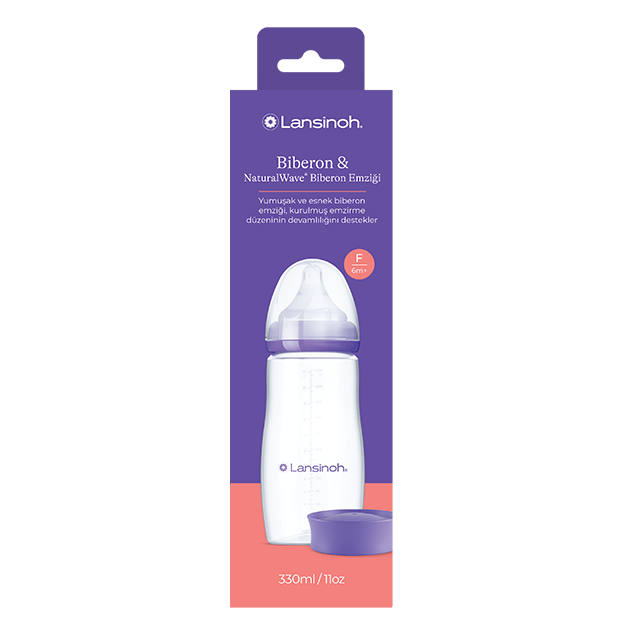 Biberon Lansinoh 330 ml cu tetină NaturalWave® din silicon, conceput pentru a susține alăptarea și tranziția naturală între sân și biberon.