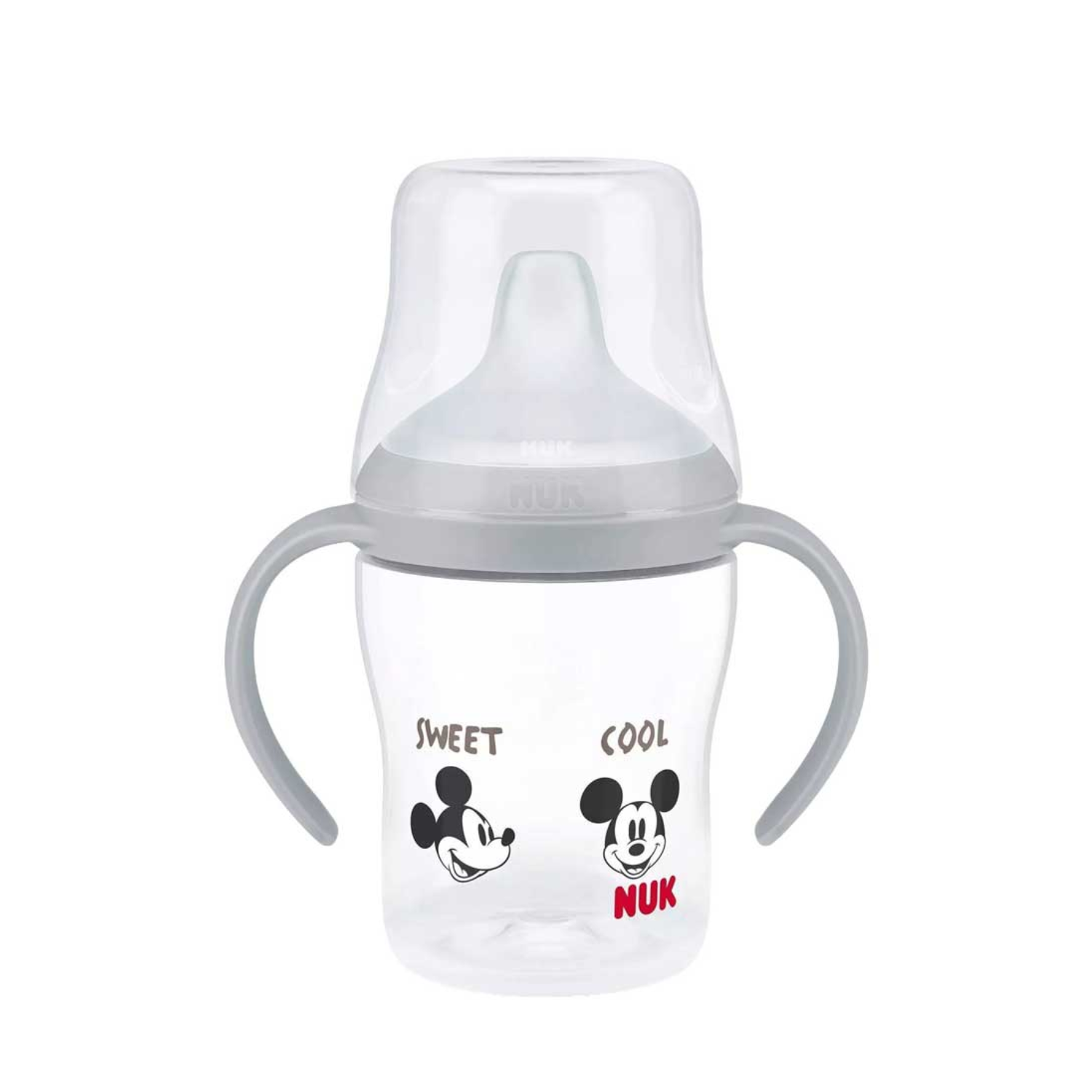 NUK Perfect Match Biberon cu Toarte și Tetină de Învățare, 150 ml – model Mickey este special creat pentru a sprijini tranziția naturală de la biberon la cană.