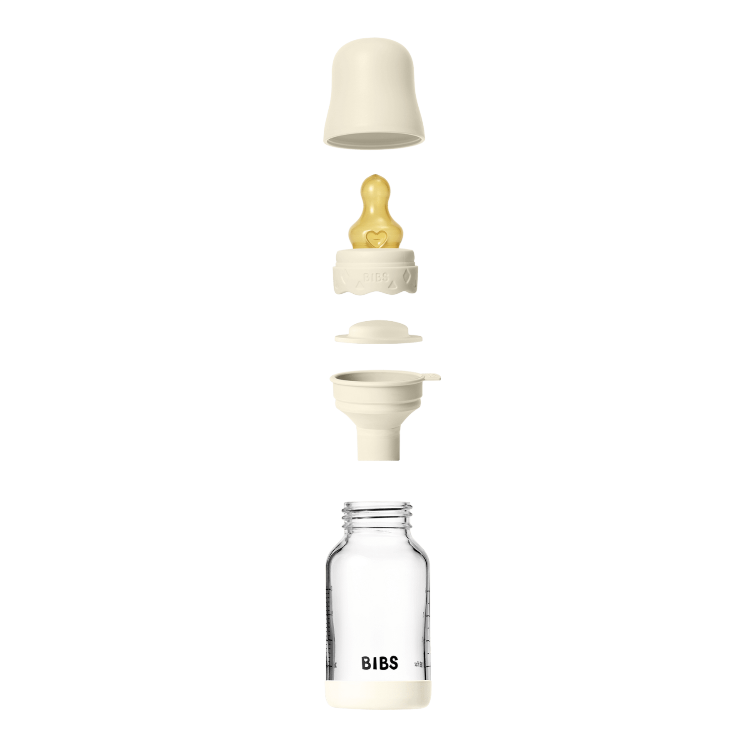 Setul include: 1 biberon, 1 tetină, 1 palnie pliabilă, 3 capace (standard, anti-versa și cu filet).
