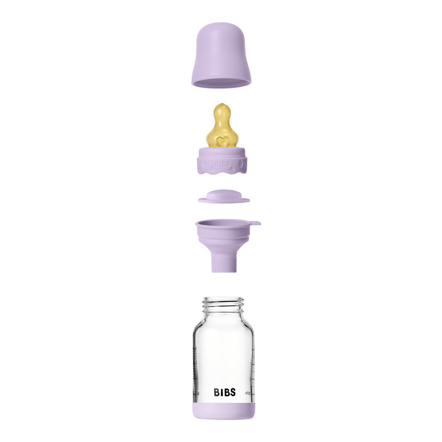 Setul include: 1 biberon, 1 tetină, 1 palnie pliabilă, 3 capace (standard, anti-versa și cu filet).