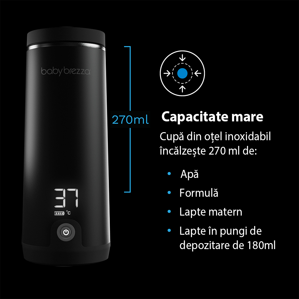Baby Brezza Superfast Portable Bottle Warmer este cel mai rapid încălzitor portabil de lichide din lume și singurul certificat sigur pentru laptele matern, permițând încălzirea acestuia direct în interiorul aparatului fără a-i afecta nutrienții. Cu un design compact, elegant și complet portabil, acest dispozitiv este ideal pentru părinții activi care vor performanță, siguranță și confort, oriunde s-ar afla.