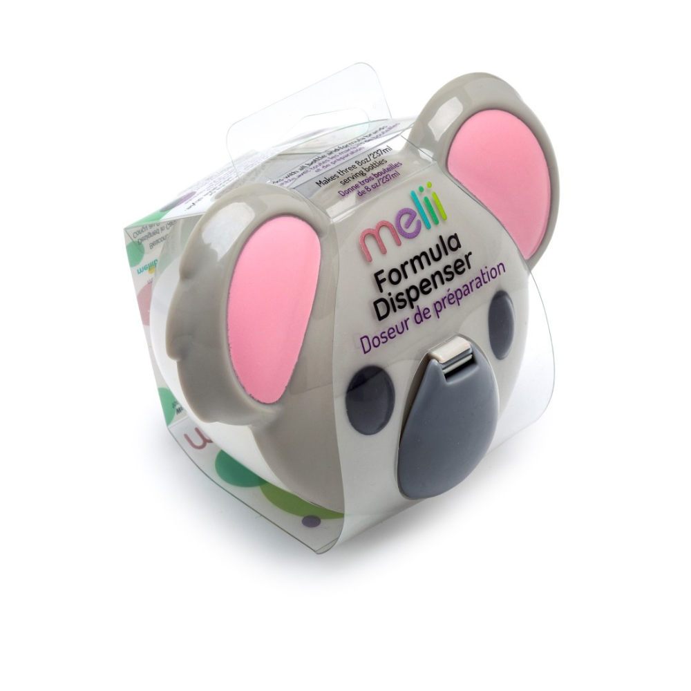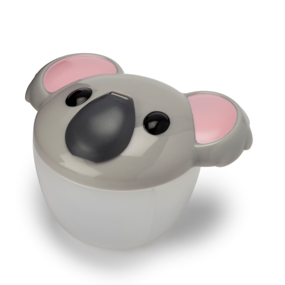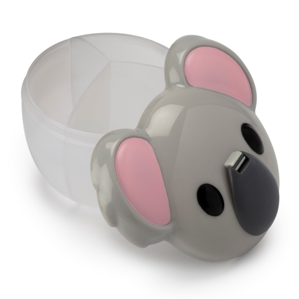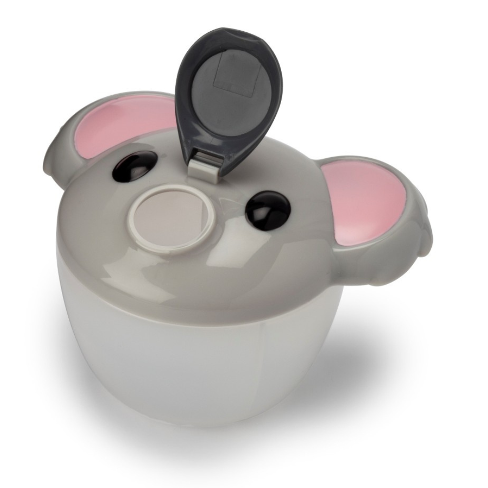 Recipientul dozator pentru lapte praf Melii, model Koala, este soluția practică și adorabilă pentru transportul și dozarea formulei de lapte sau a pudrei de cereale pentru bebeluși. Prevăzut cu 3 compartimente separate, acesta permite porționarea prealabilă a cantităților necesare pentru prepararea a până la trei biberoane de aproximativ 260 ml fiecare.