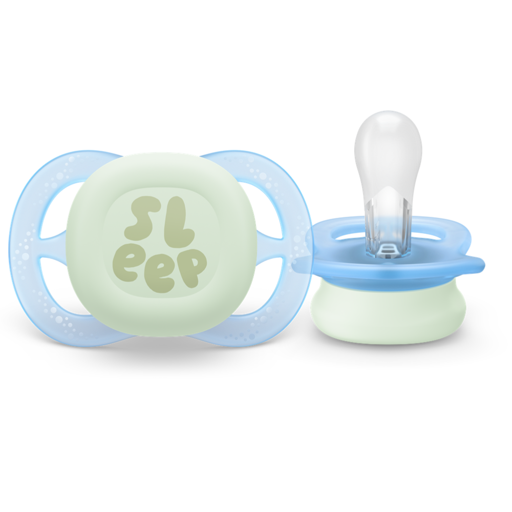 Liniște sufletească încă de la început cu suzeta Philips Avent Ultra Start pentru noapte, concepută special pentru nou-născuți și bebeluși de până la 6 luni. Realizată din 80% materiale pe bază de plante, suzeta oferă un echilibru perfect între confort, siguranță și sustenabilitate. Tetina ortodontică din silicon moale susține dezvoltarea orală naturală, în timp ce designul ușor, fără inel, este ideal pentru fețele delicate ale celor mici. În plus, suzeta strălucește în întuneric, permițând părinților să o găsească ușor pe timpul nopții.