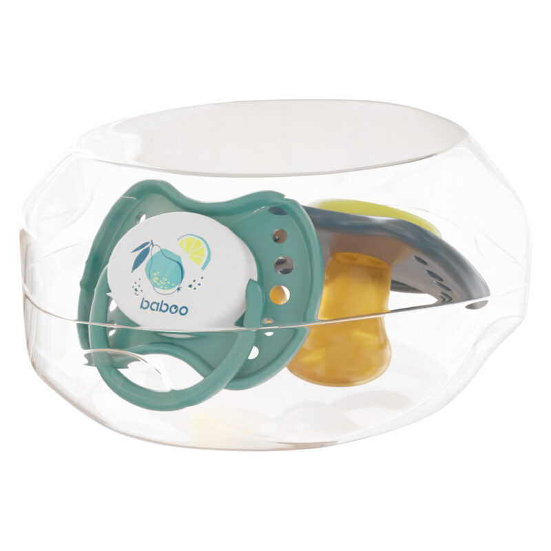 Suzeta ortodontică din latex Calmy Baboo®, 6 luni – realizată din latex natural, cu tetină moale ce imită sânul mamei, sprijină dezvoltarea orală corectă a bebelușului. Include capsulă igienică pentru depozitare și sterilizare rapidă la microunde.