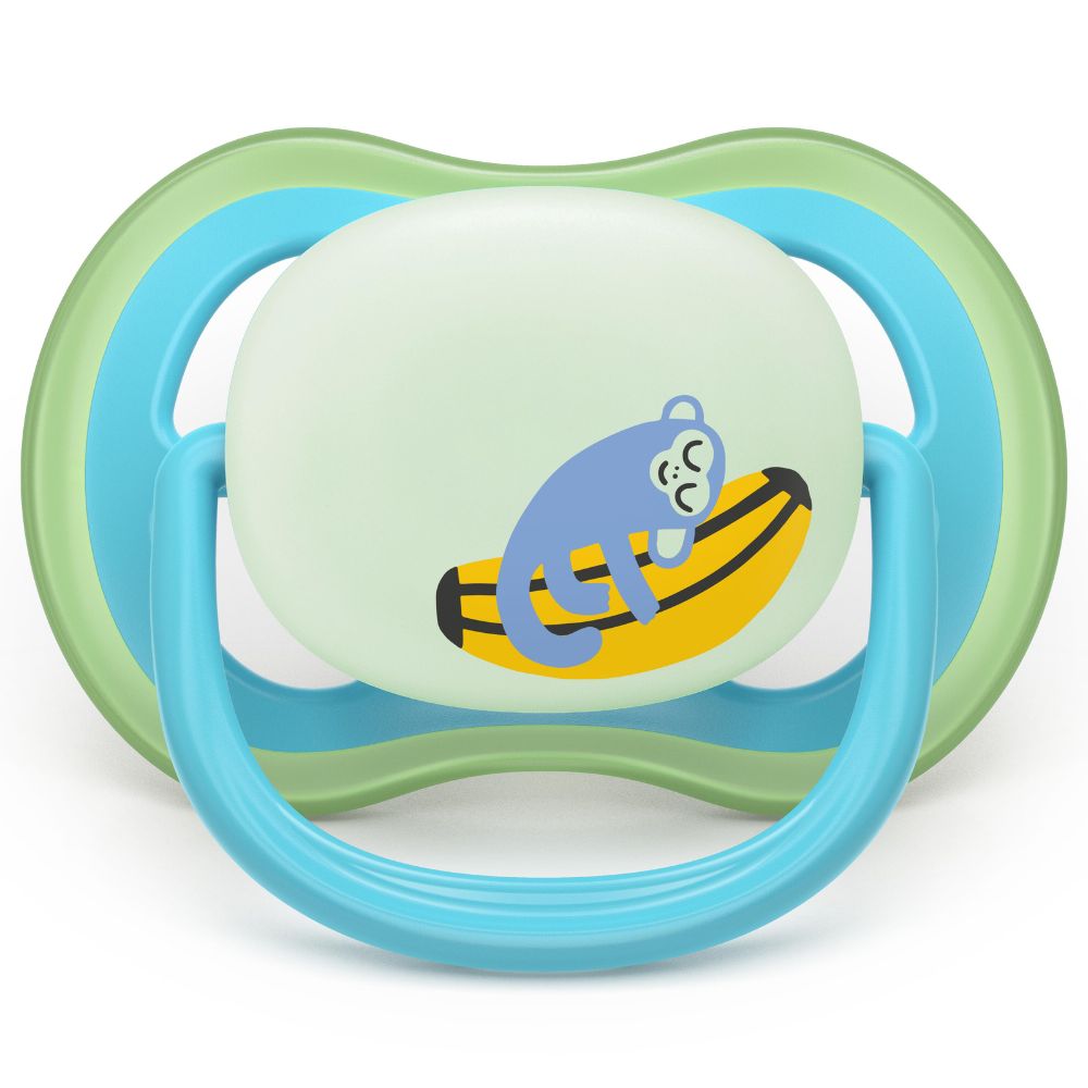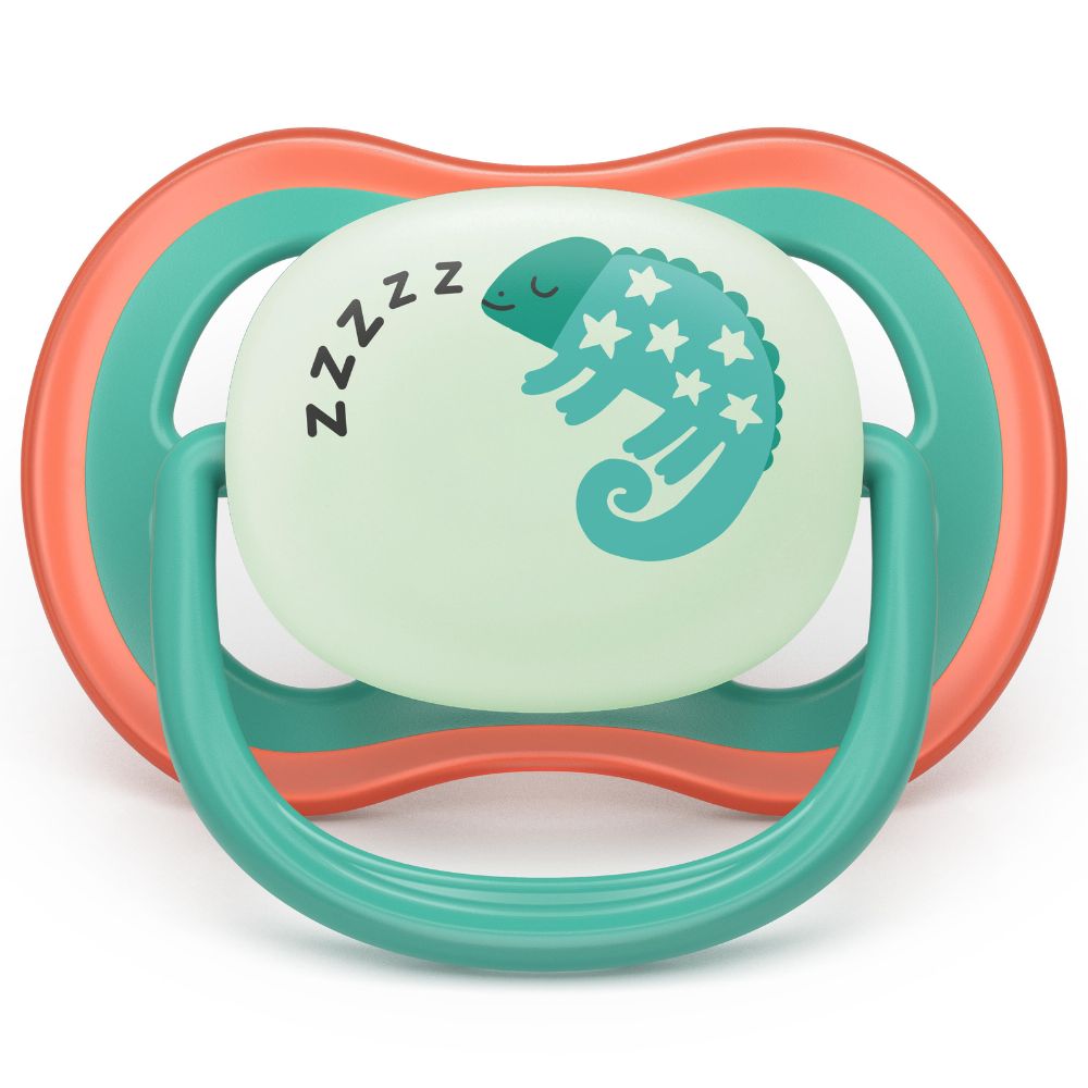 Baza îngustă a tetinei este special creată pentru a diminua presiunea dintre limbă și cerul gurii, iar orificiile din discul de protecție permit pielii bebelușului să respire, menținând-o uscată și confortabilă.