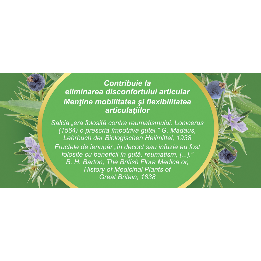 Conține combinație de plante medicinale: salcie, ienupăr, rozmarin, soc, mesteacăn, frasin, urzică, lavandă, plop.
