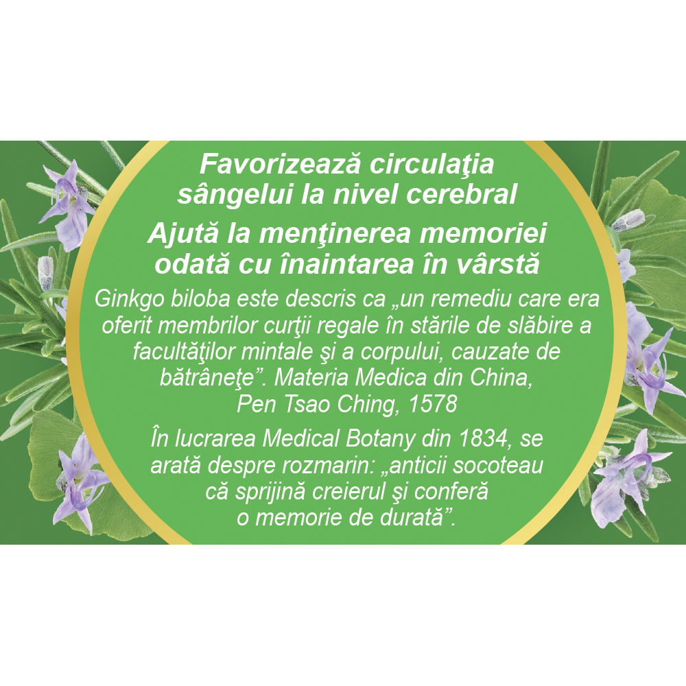 Contine frunze de Ginkgo biloba, recunoscute pentru rolul lor in sustinerea microcirculatiei.