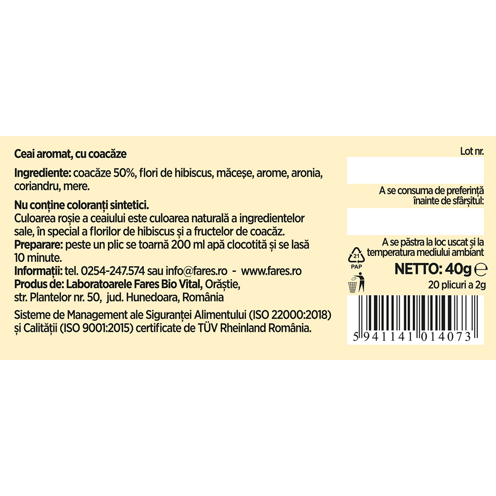 Ceai cu 50% coacaze, 20 plicuri, Fares
