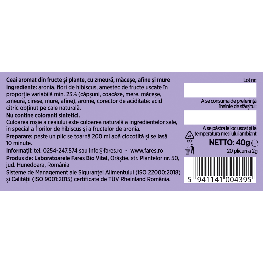Ceai cu fructele carpatilor, 20 plicuri, Fares