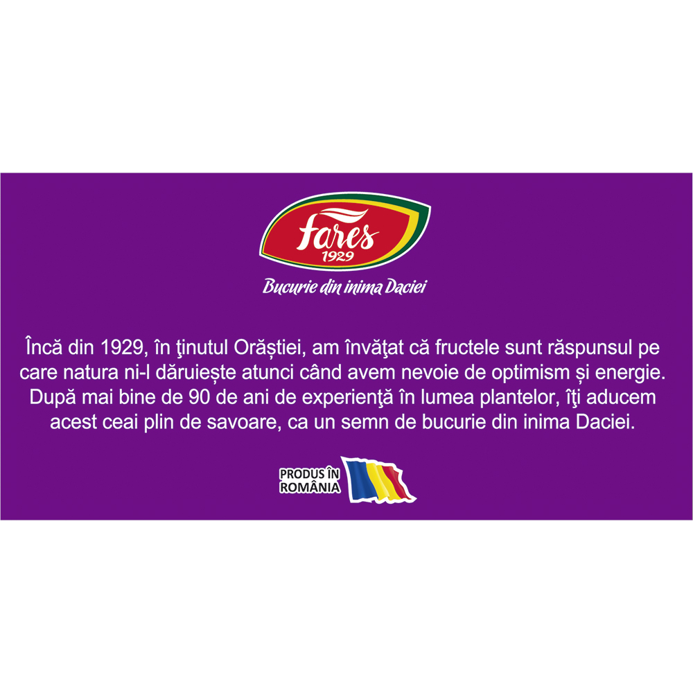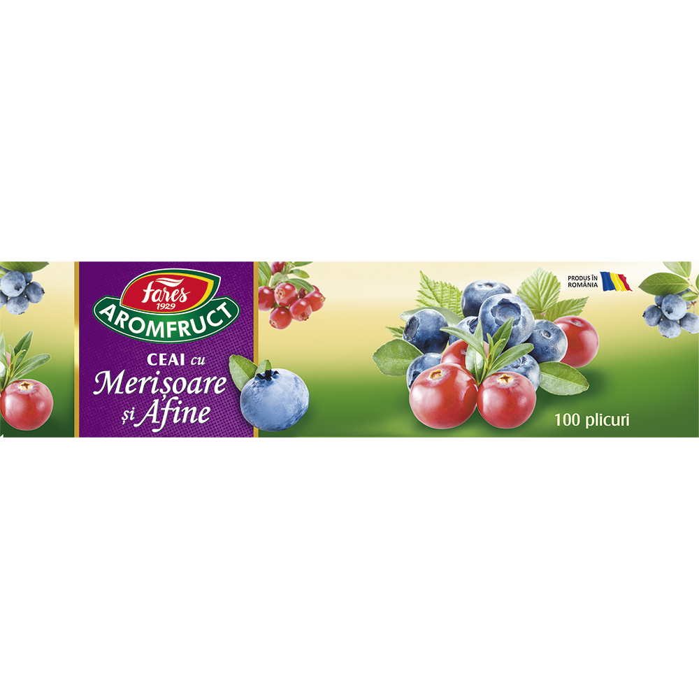 Ceaiul Aromfruct cu Merişoare şi Afine de la Fares 1929 este un amestec aromat de fructe și plante. Acesta combină gustul distinct al merișoarelor cu cel al afinelor, oferind o băutură cu o aromă proaspătă și un gust plăcut.