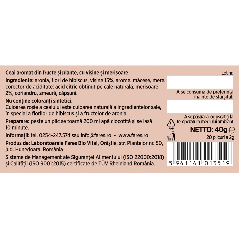 Ceai cu visine si merisoare, 20 plicuri, Fares