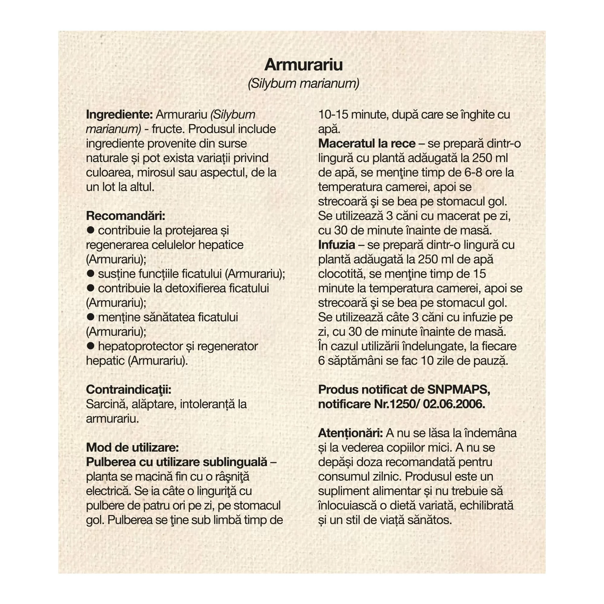 Armurariu contribuie la protejarea și regenerarea celulelor hepatice (Armurariu); susține funcțiile ficatului (Armurariu); contribuie la detoxifierea ficatului (Armurariu); menține sănătatea ficatului (Armurariu); hepatoprotector și regenerator hepatic (Armurariu).