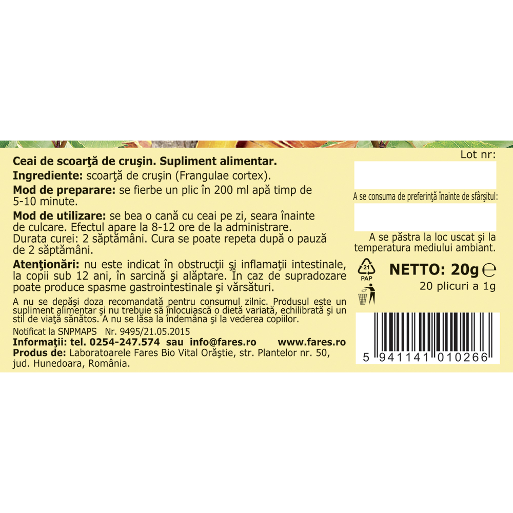Ceai de crusin, 20 plicuri, Fares [5941141010266]