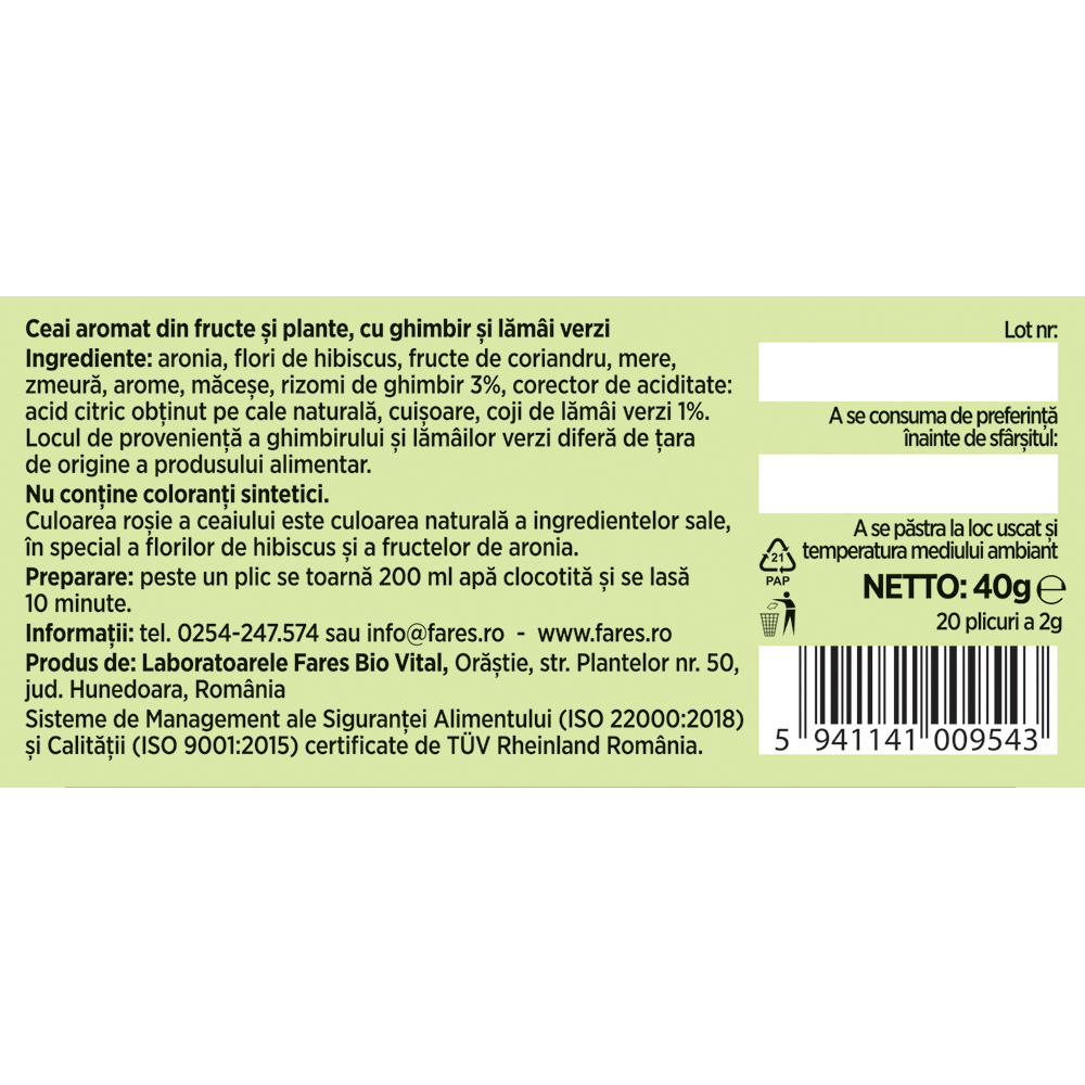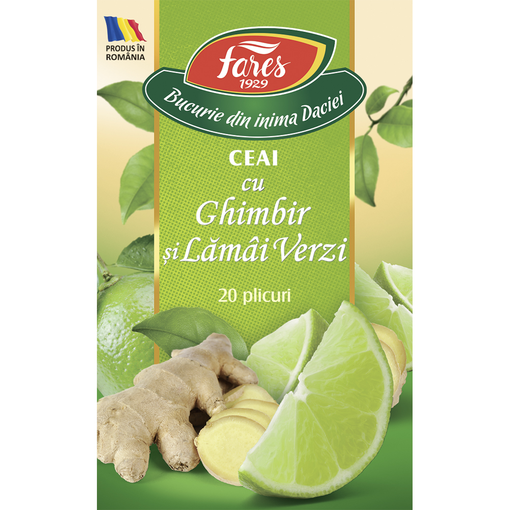 Ceai de ghimbir si lamai verzi, 20 plicuri, Fares