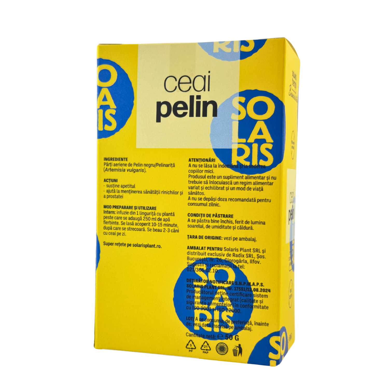 Produsul este un supliment alimentar și nu trebuie să înlocuiască un regim alimentar variat și echilibrat și un mod de viață sănătos.