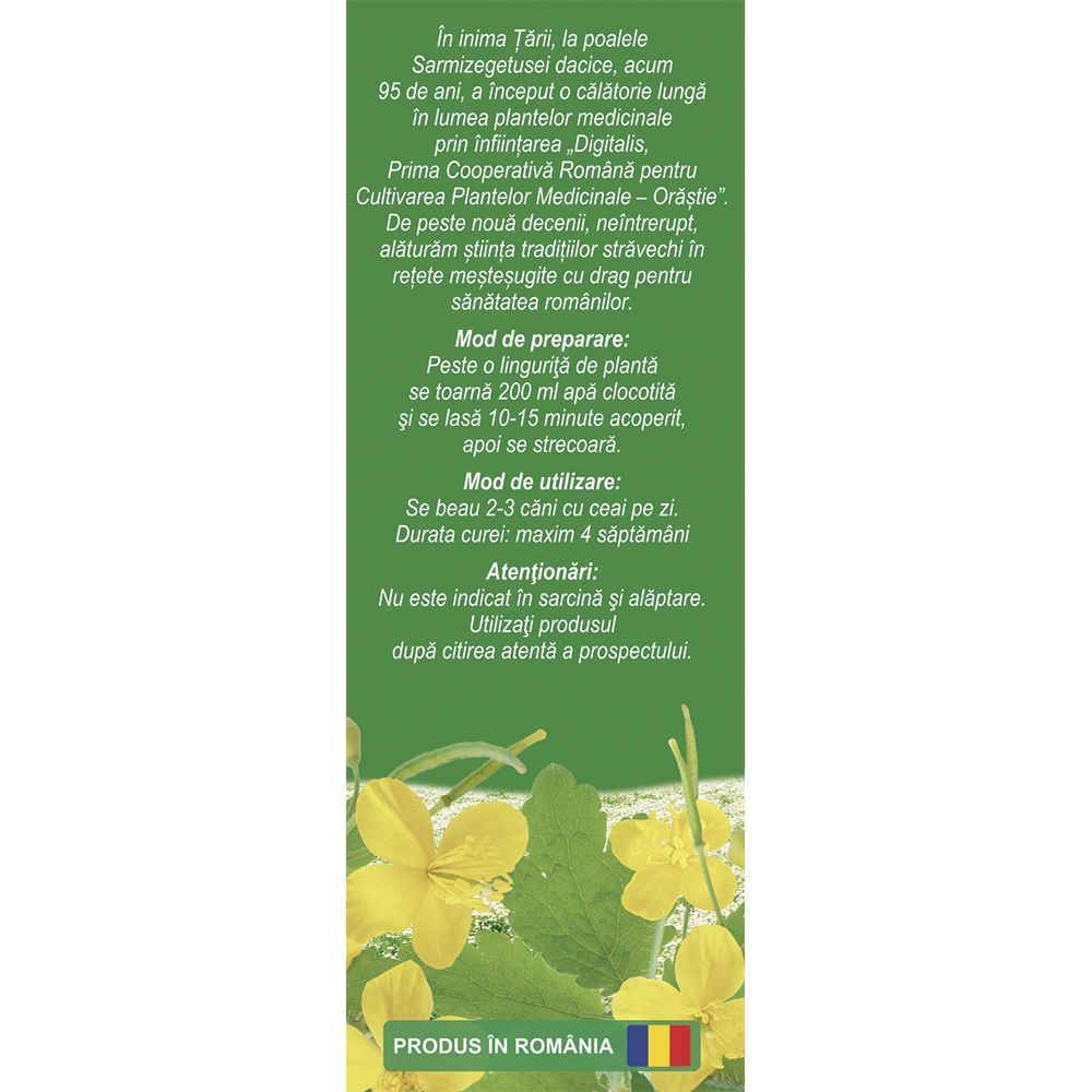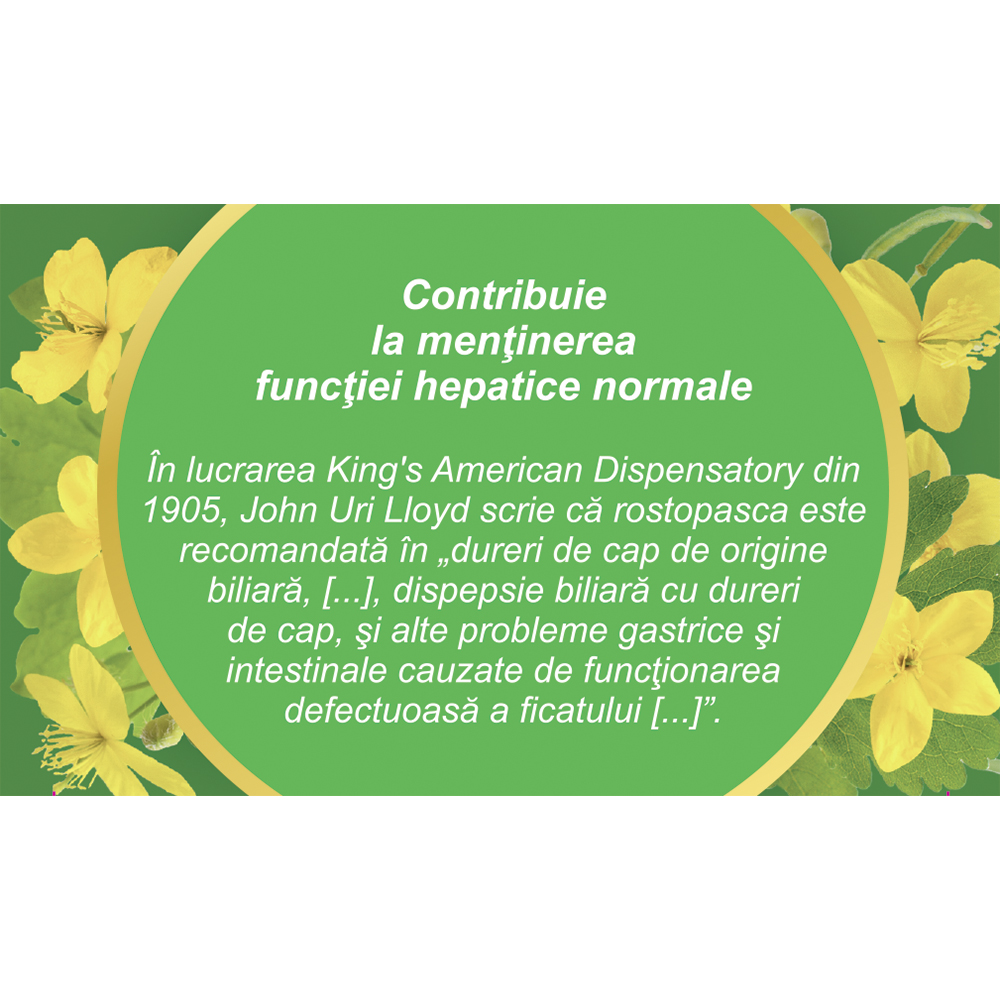 Ceaiul de rostopască (Chelidonii herba) este un supliment alimentar , recunoscut pentru conținutul său în flavonoide (min. 0,5%), ideal pentru prepararea unui ceai din plante care contribuie cu efect benefic asupra organismului.