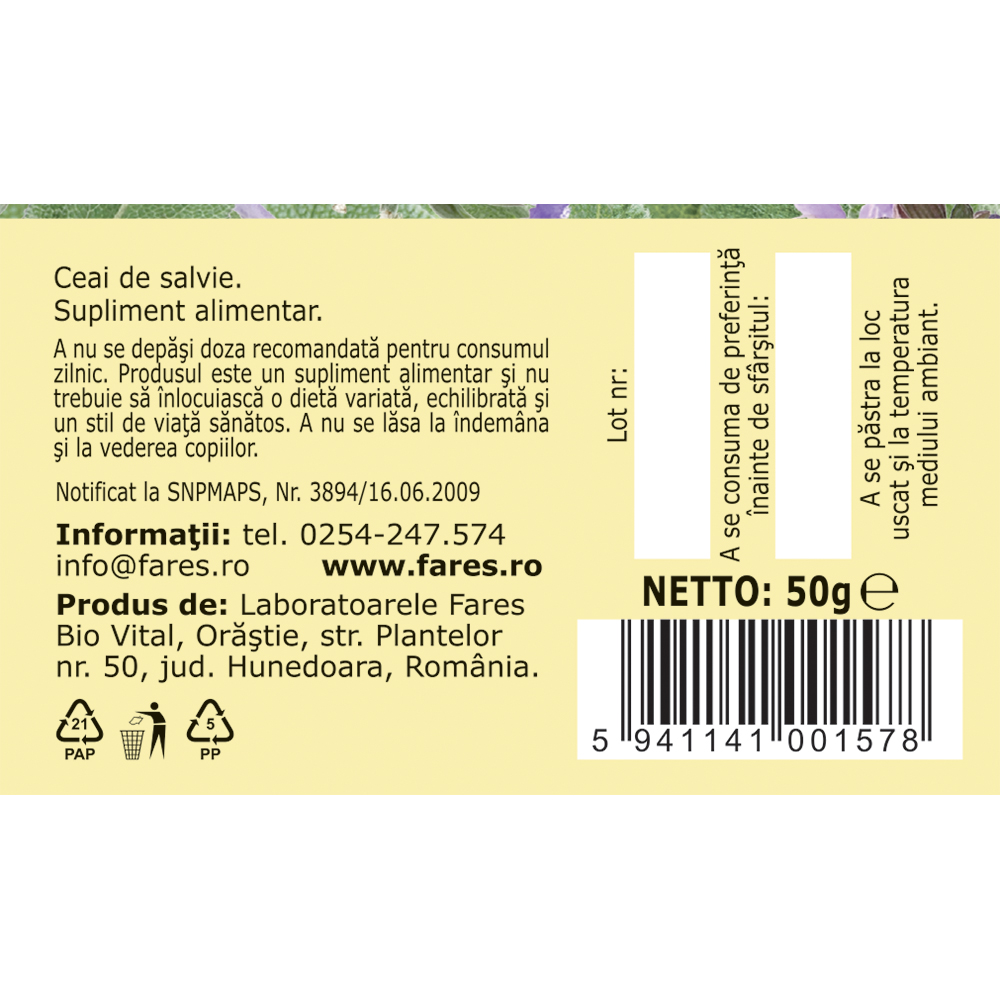 Ceai de salvie, 50 gr, Fares [5941141001578]