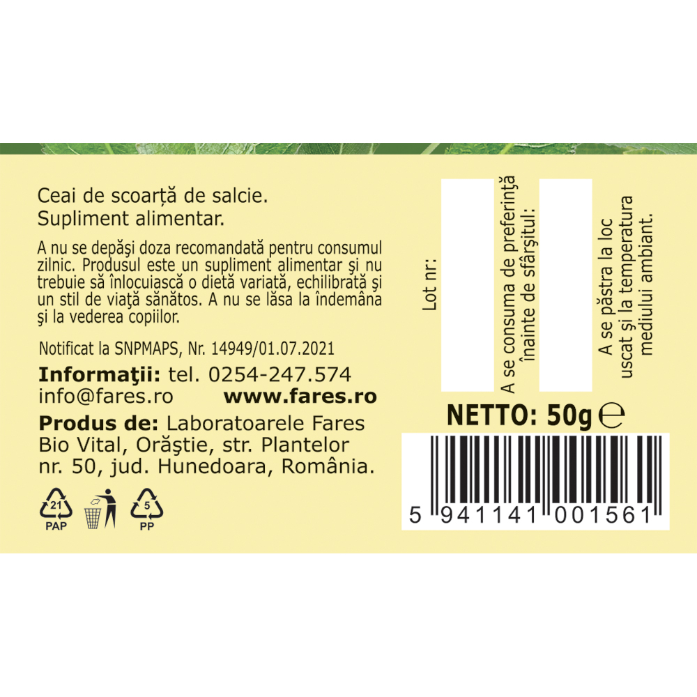 Ceai de scoarta de salcie, 50g, Fares [5941141001561]