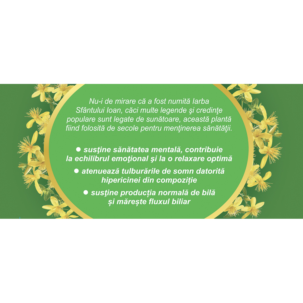 Conține partea aeriană a plantei Hyperici herba atent selecționată.