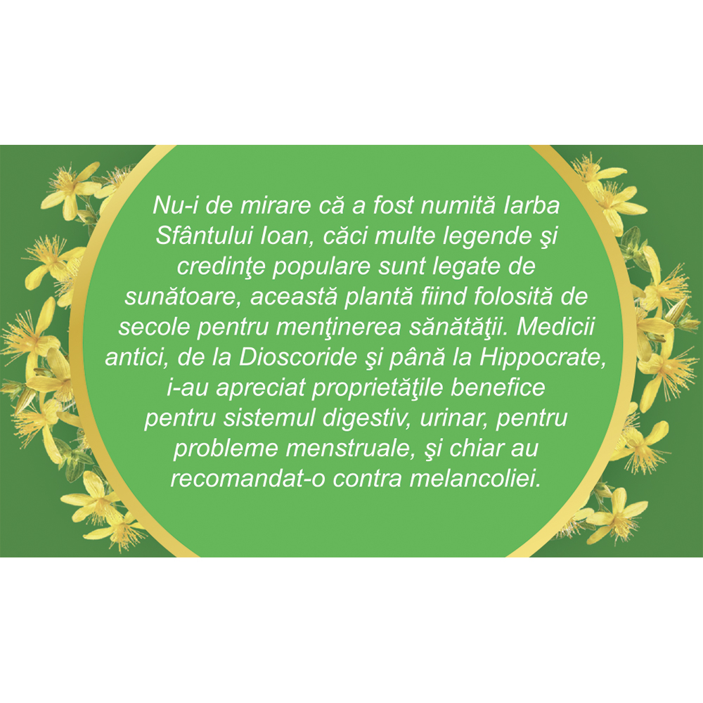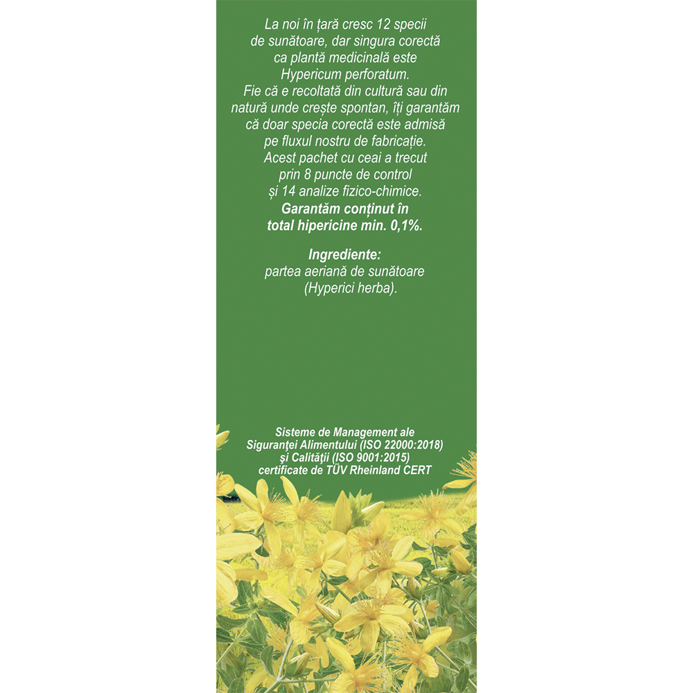 contine 100% parti aeriene de sunatoare (Hyperici herba)