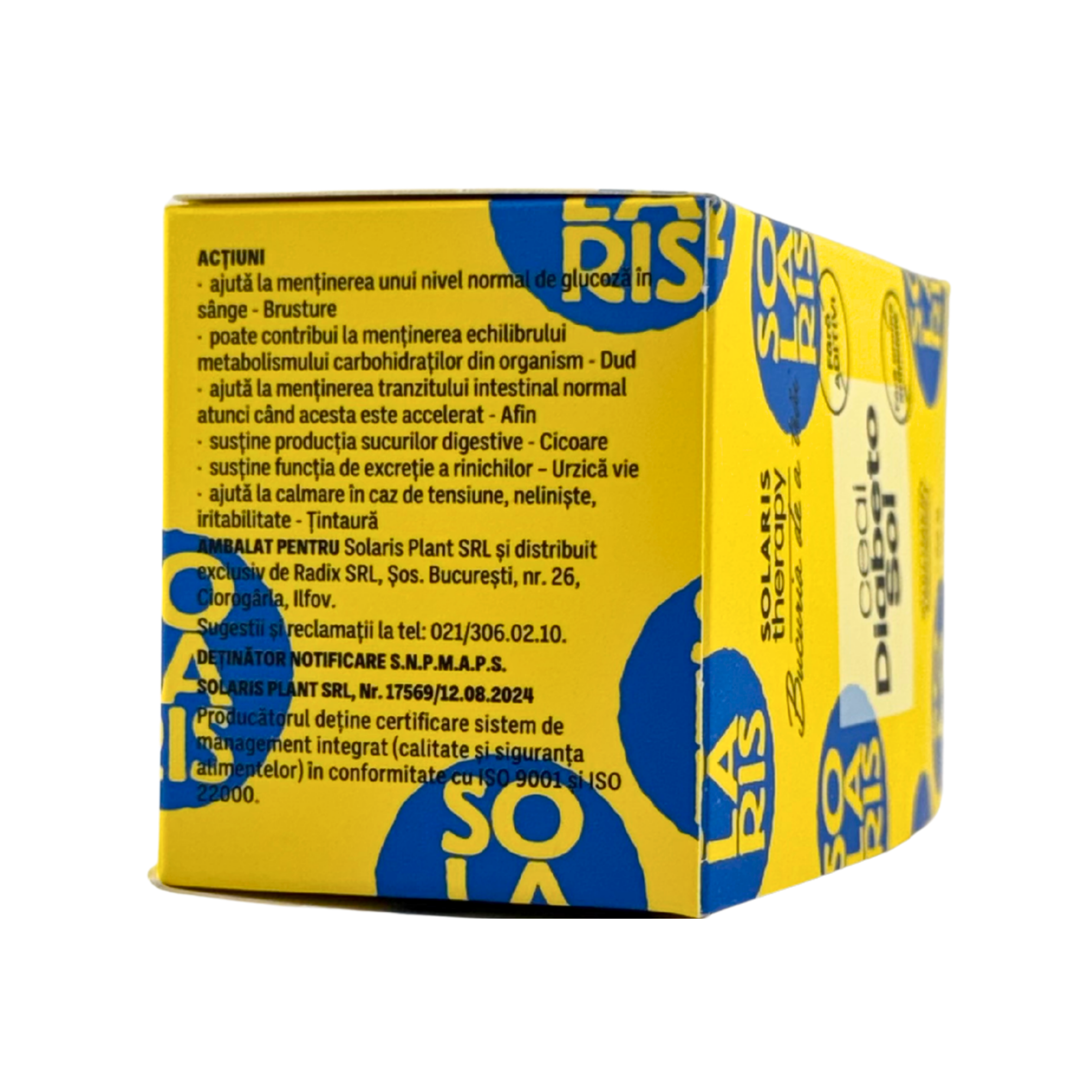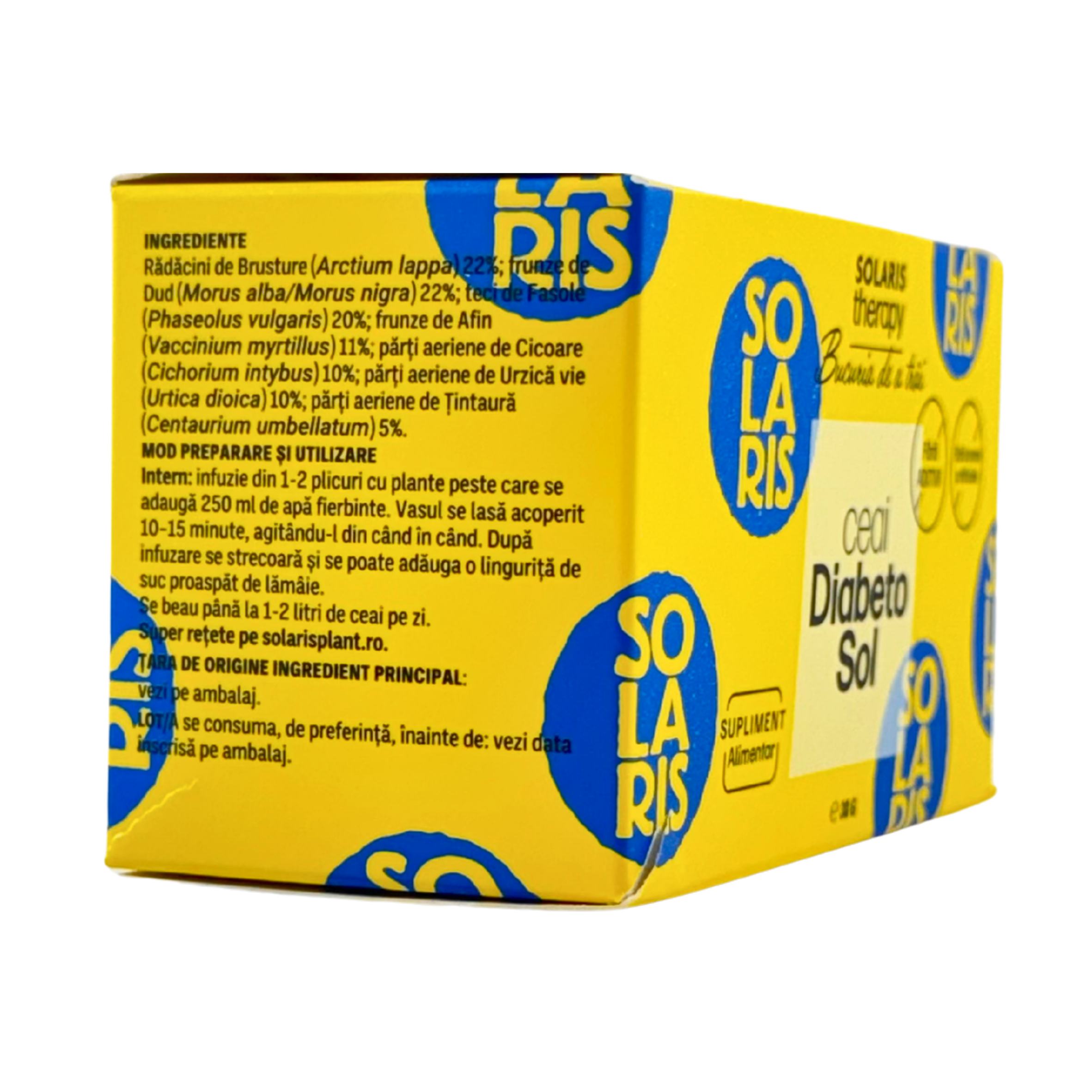Ceaiul Diabetosol Solaris este o formulă din plante atent selecționate, care contribuie la menținerea nivelului normal de glucoză din sânge și contribuie la funcționarea normală a metabolismului. Ingredientele din compoziție contribuie la digestia normală, contribuie la procesele naturale de eliminare ale organismului și contribuie la starea generală de bine, fiind recomandat ca parte a unui stil de viață echilibrat.