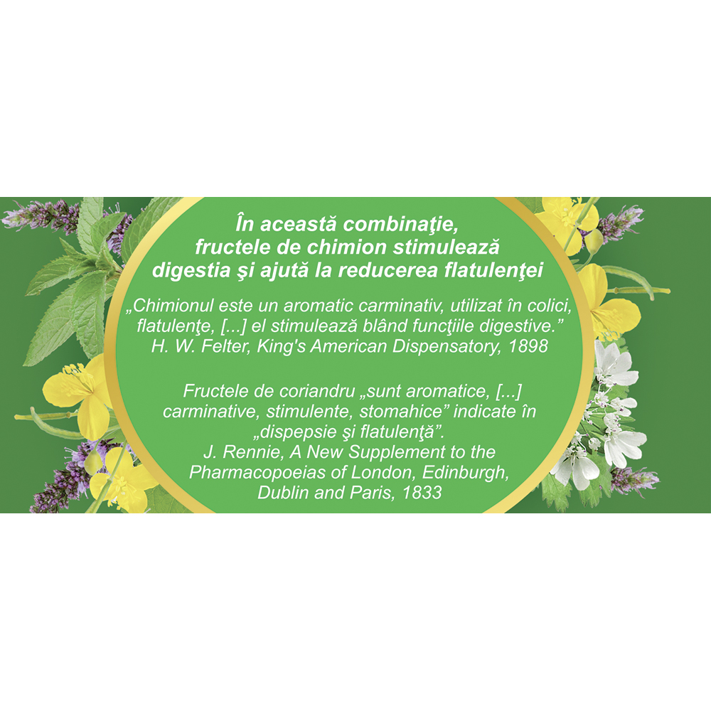Fructele de chimion, în această combinație, ajută la stimularea digestiei și la reducerea flatulenței.