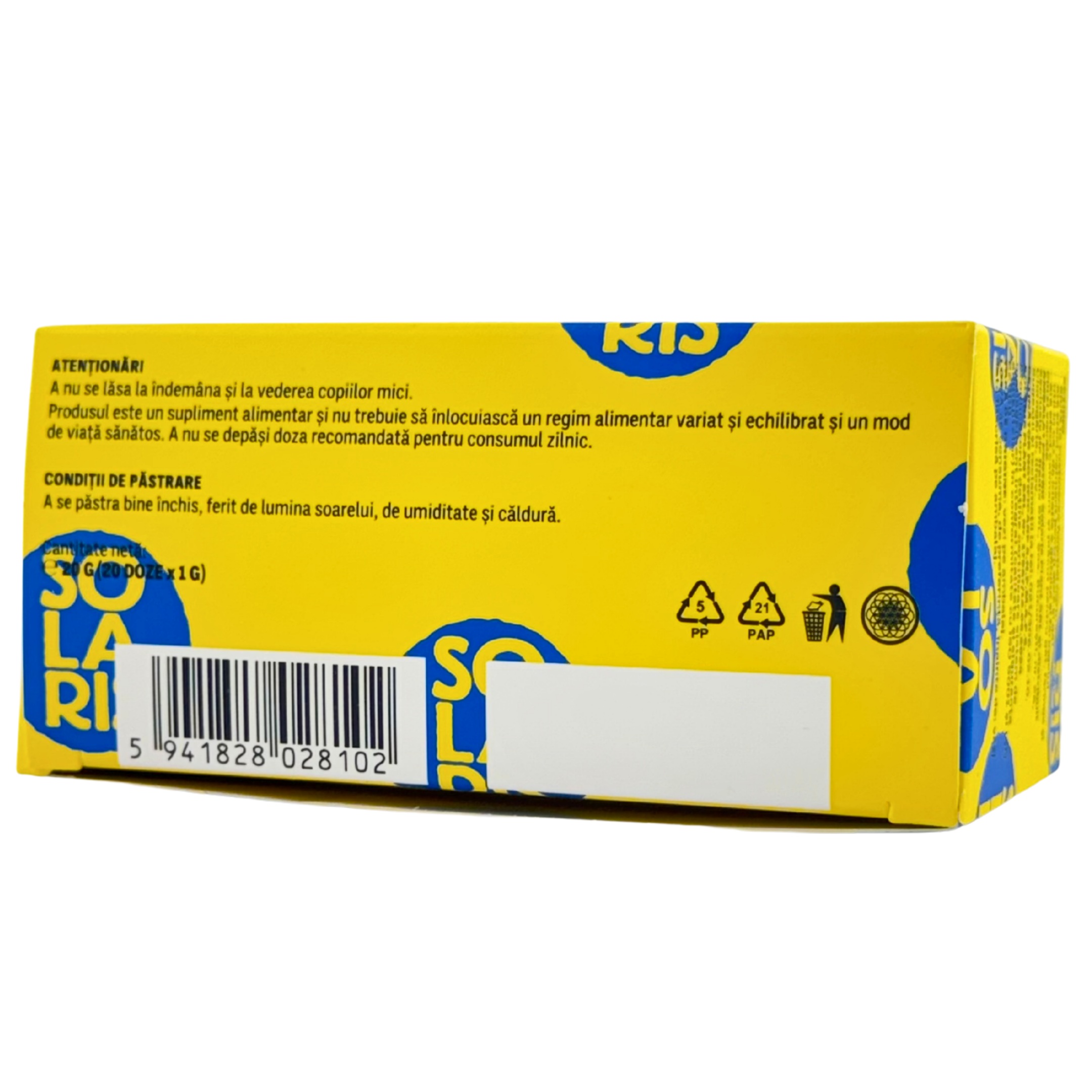 Produsul este un supliment alimentar și nu trebuie să înlocuiască un regim alimentar variat și echilibrat și un mod de viață sănătos.