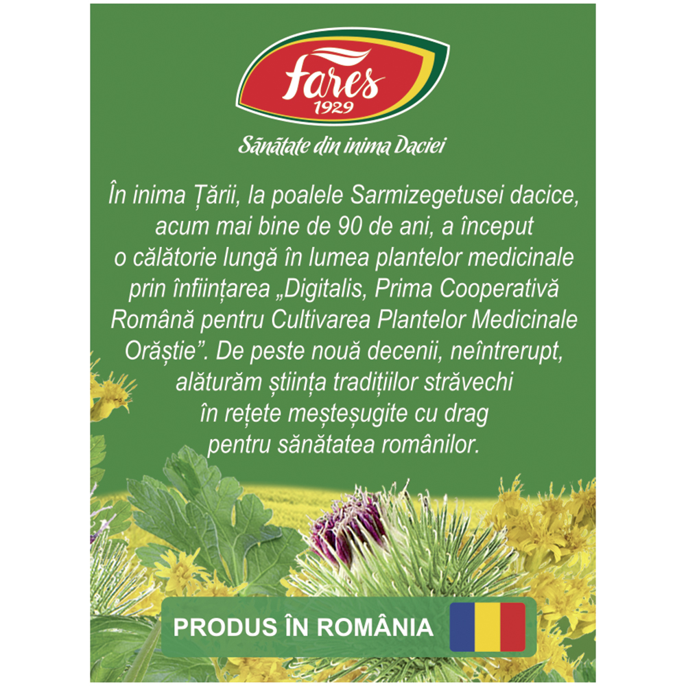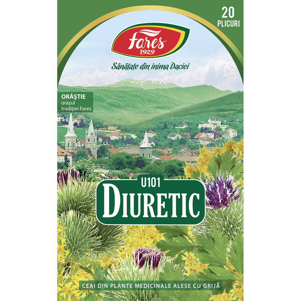 Suplimentul alimentar Diuretic de la Fares 1929 este un ceai din plante medicinale, un amestec formulat cu grijă pentru a susține funcționarea normală a tractului urinar. Printre ingredientele sale se numără pătrunjelul, brusturele și splinuța.