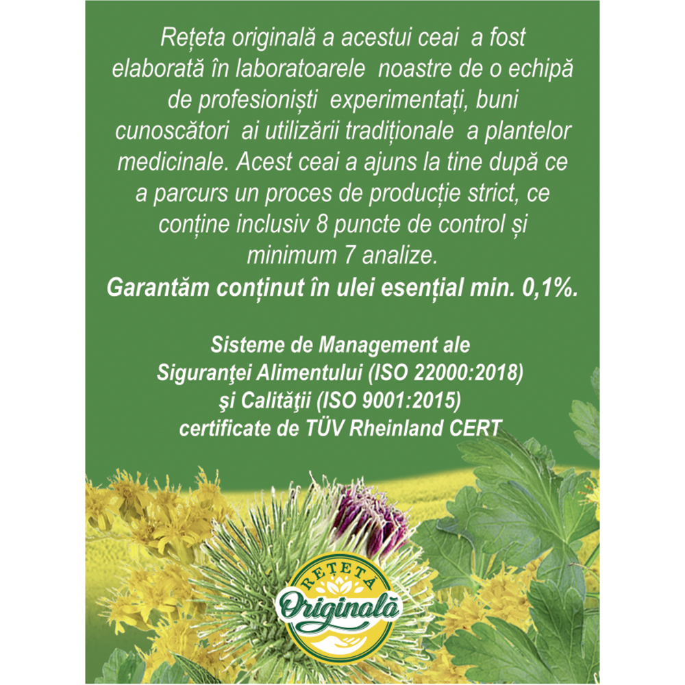 Mod de preparare: Se fierbe un plic în 300 ml de apă timp de 5 minute. Se lasă minim o oră, apoi se strecoară.