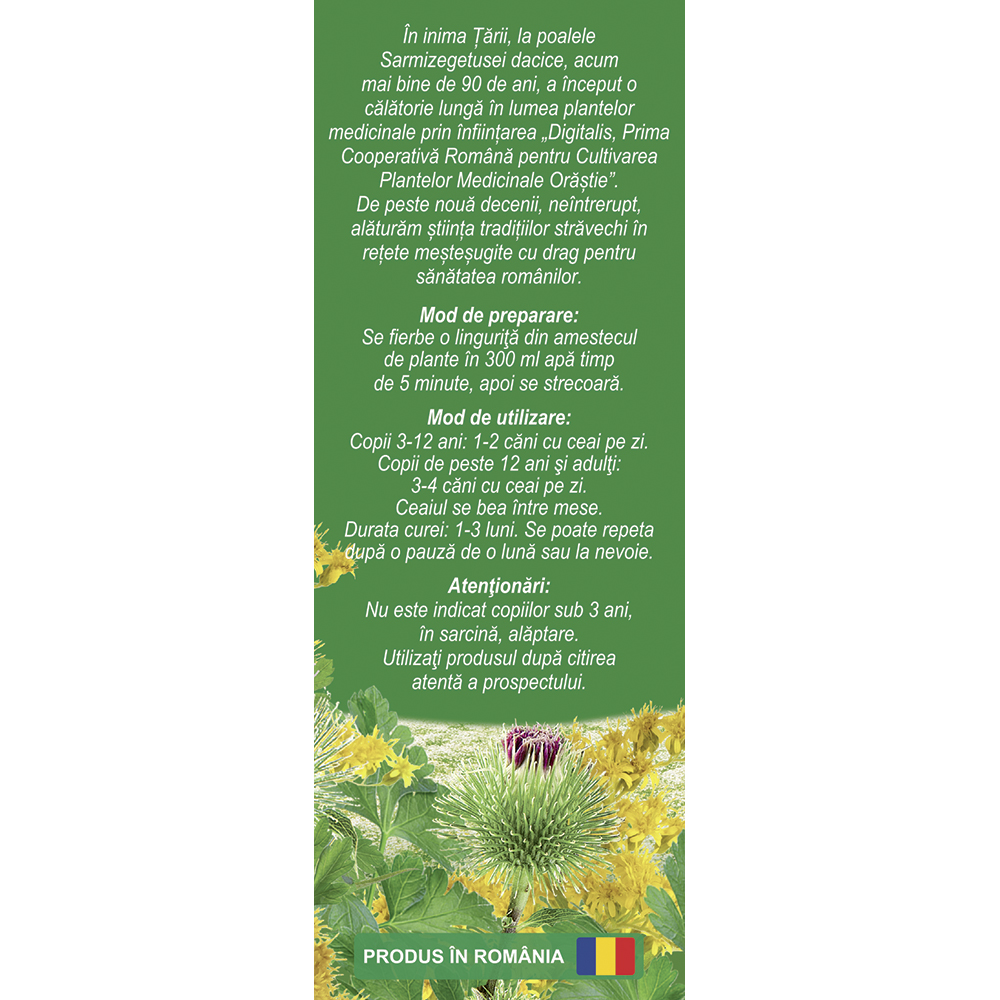 Mod de preparare: Se fierbe o linguriță de amestec de plante în 300 ml de apă timp de 5 minute, apoi se strecoară.