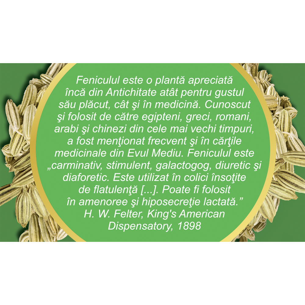 Conține fructe de fenicul atent selecționate