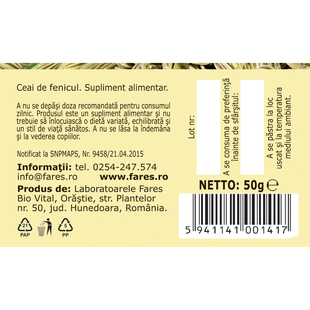 Ceai fenicul, 50g, Fares