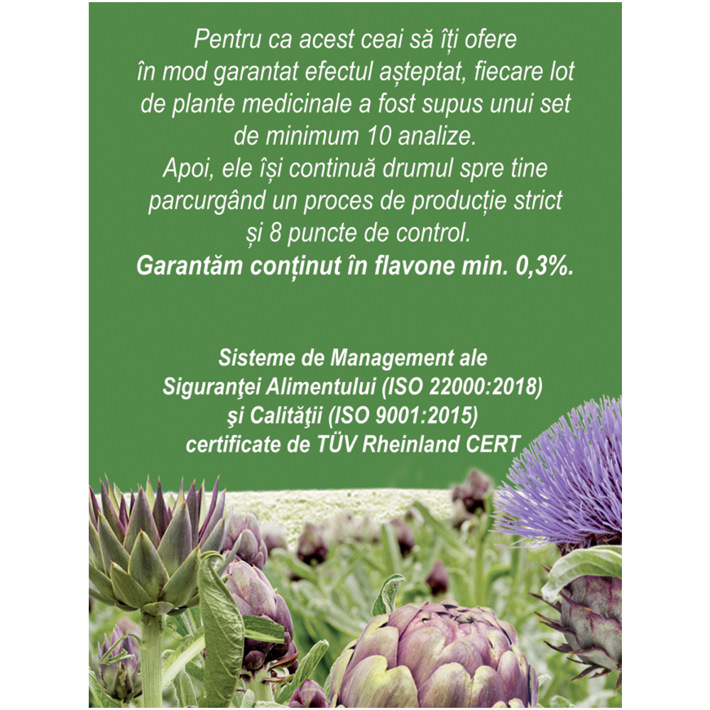 Contine exclusiv frunze de anghinare (Cynarae folium)