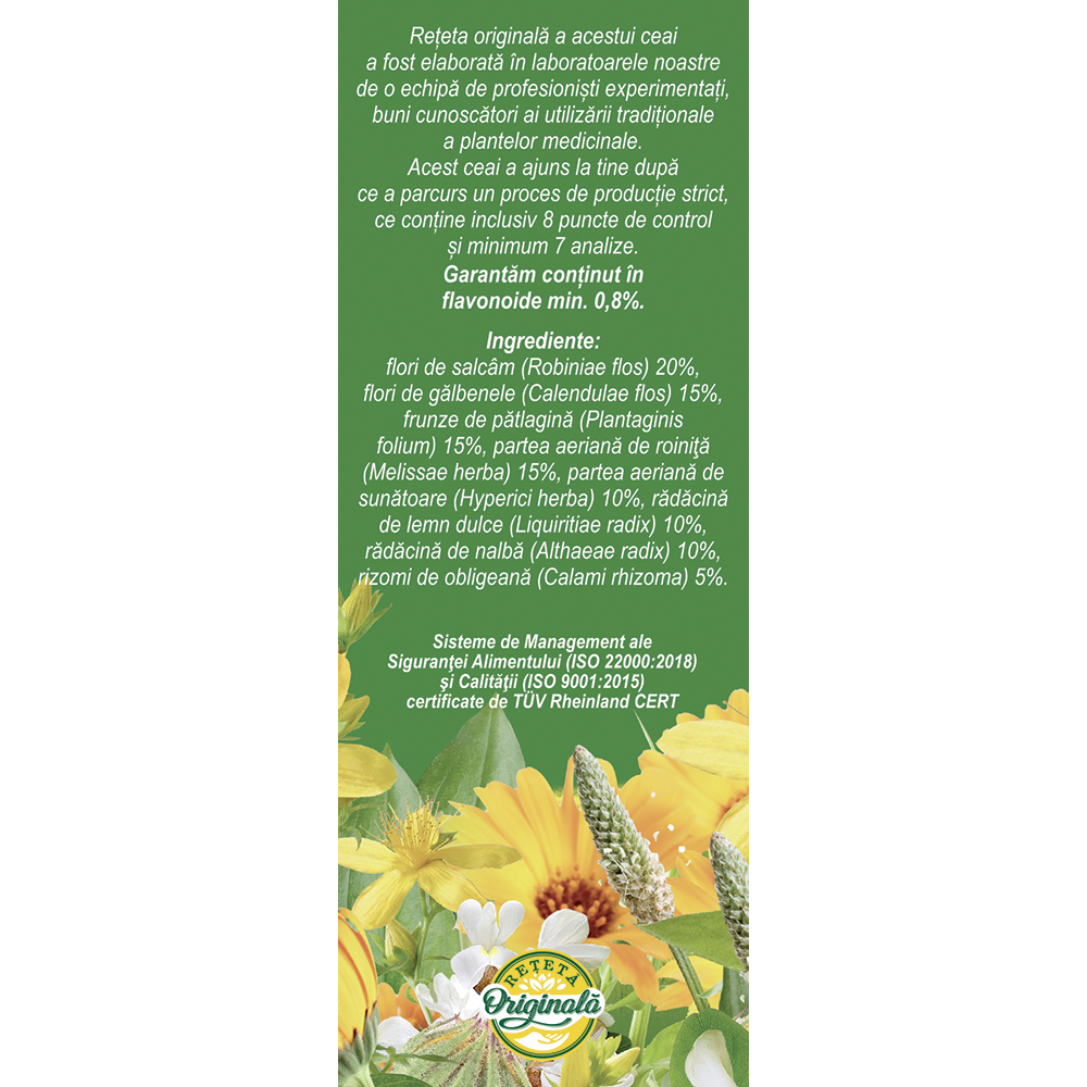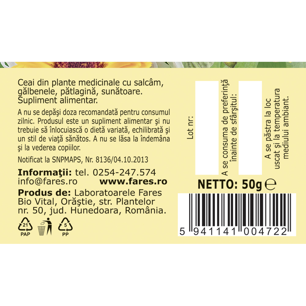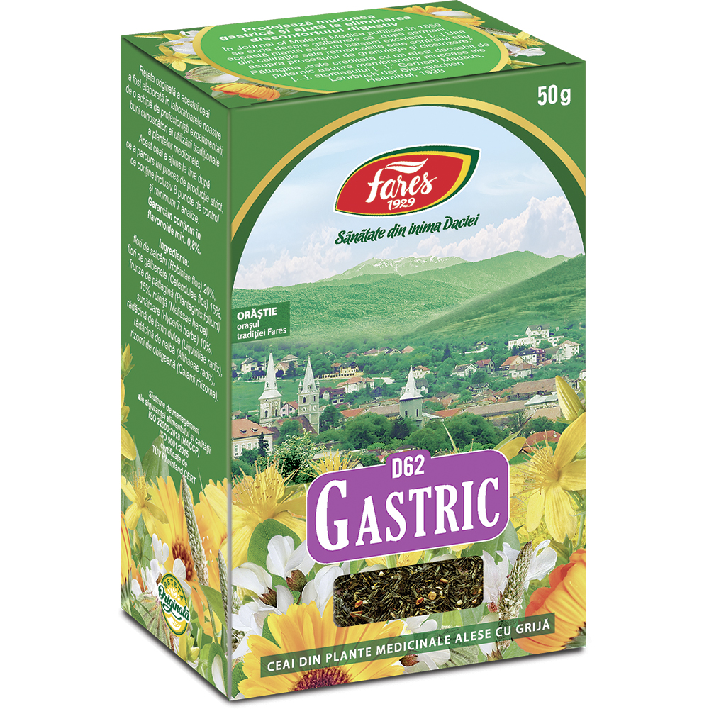 Ceaiul Gastric D62 Fares este un supliment alimentar pe bază de plante medicinale atent selecționate, precum salcâm, gălbenele, pătlagină, sunătoare și roiniță. Este conceput pentru a susține confortul digestiv și pentru a contribui la echilibrul natural al organismului.