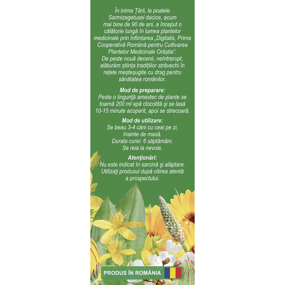 Se beau 3-4 căni cu ceai pe zi, înainte de masă.