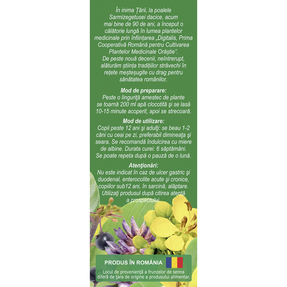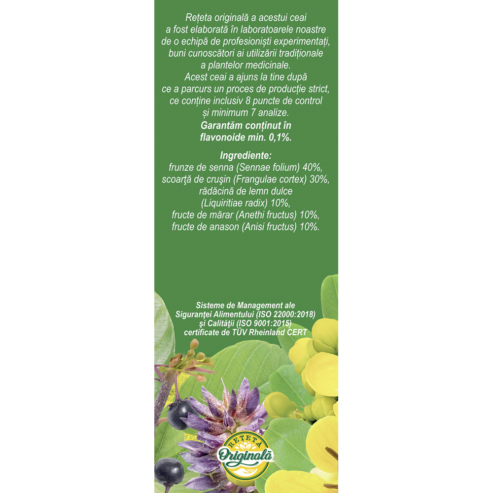 Contine un amestec de plante medicinale precum senna, crusin si lemn dulce.