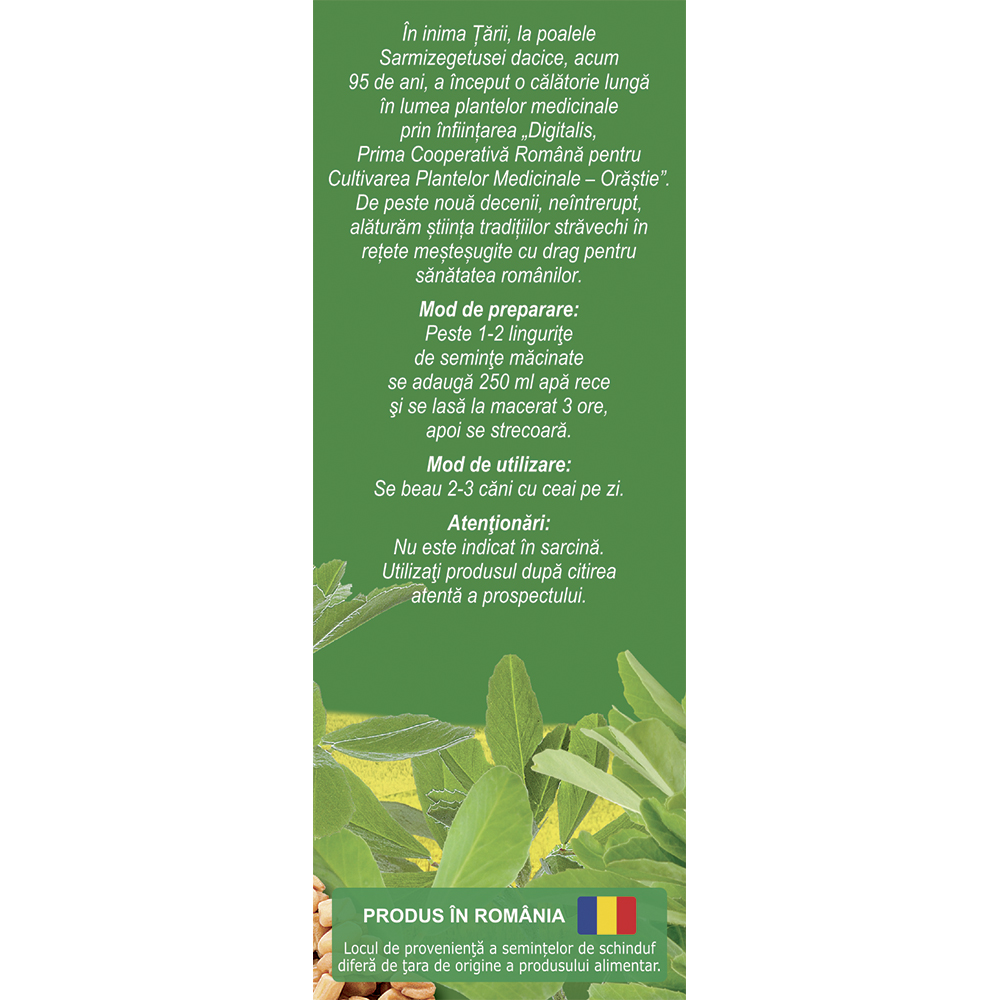 contine 100% seminte de schinduf (Trigonellae foenugraeci semen)