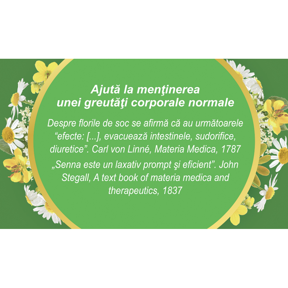Ceai din plante care contribuie la menținerea unei greutăți corporale normale si la susținerea unui stil de viață sănătos și echilibrat.