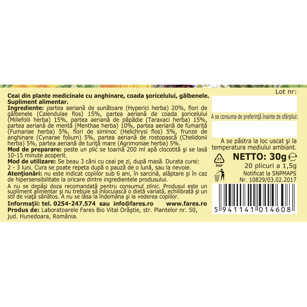 Ultima actualizare a informatiilor de prezentare pentru Ceai Vezica Biliara, 20 plicuri, Fares a fost efectuata la data de 14-11-2025.  |  Raporteaza Descriere Gresita